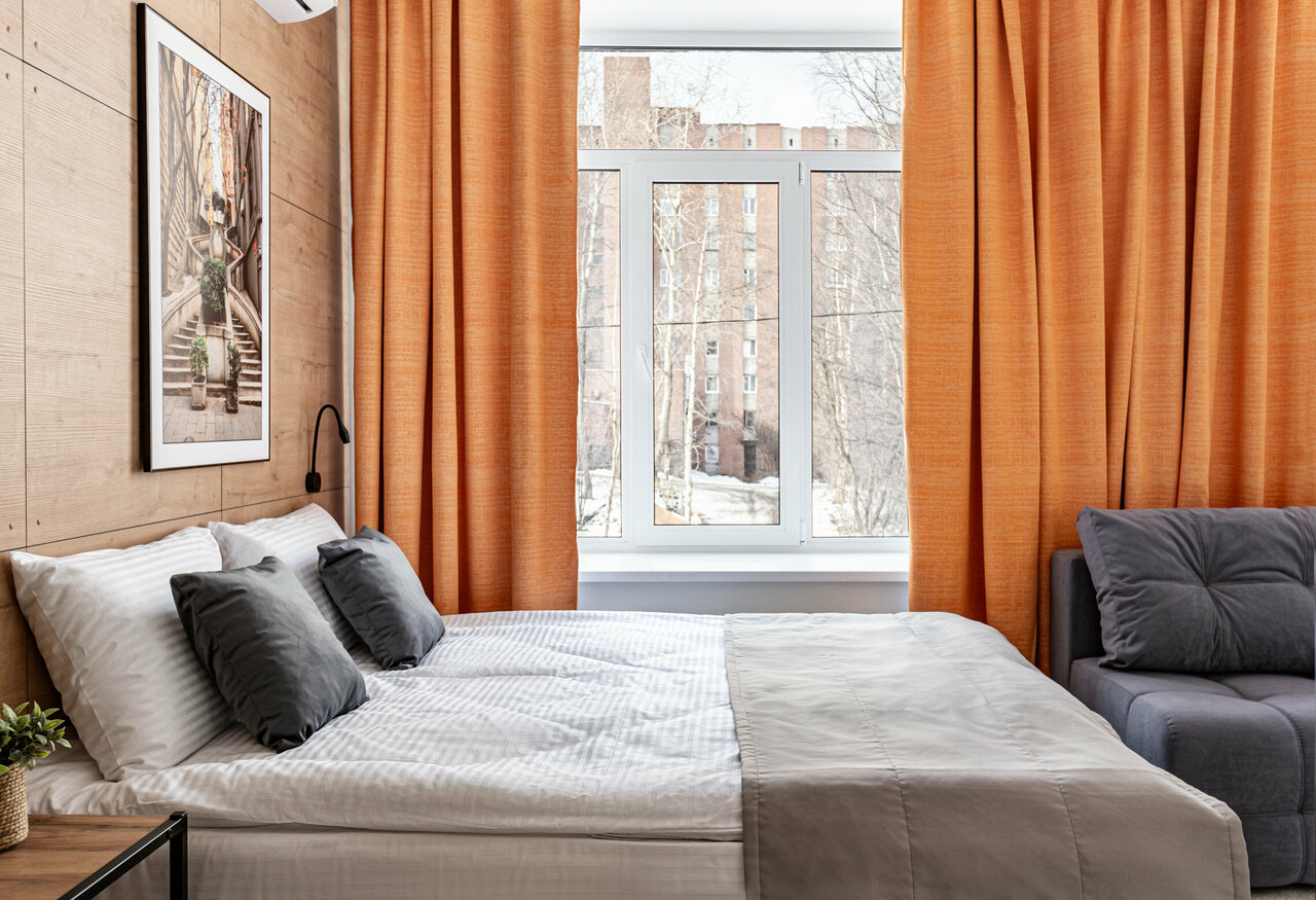Хорошая гостиница. Чисто, уютно. Номера свежие, современные. Есть мини-кухня с необходимой техникой. В номере есть все для комфортного отдыха после прогулок по городу. На этаже утюг и гладильная доска — можно самостоятельно подойти и погладить вещи. Единственное — гостиницу не сразу обнаружили. На карте она находится левее, в пристройке к основному 54-му дому.