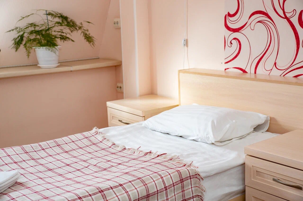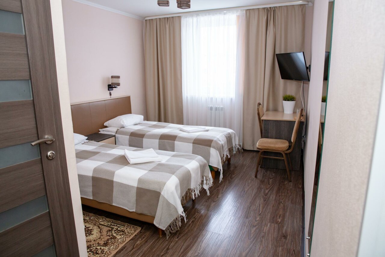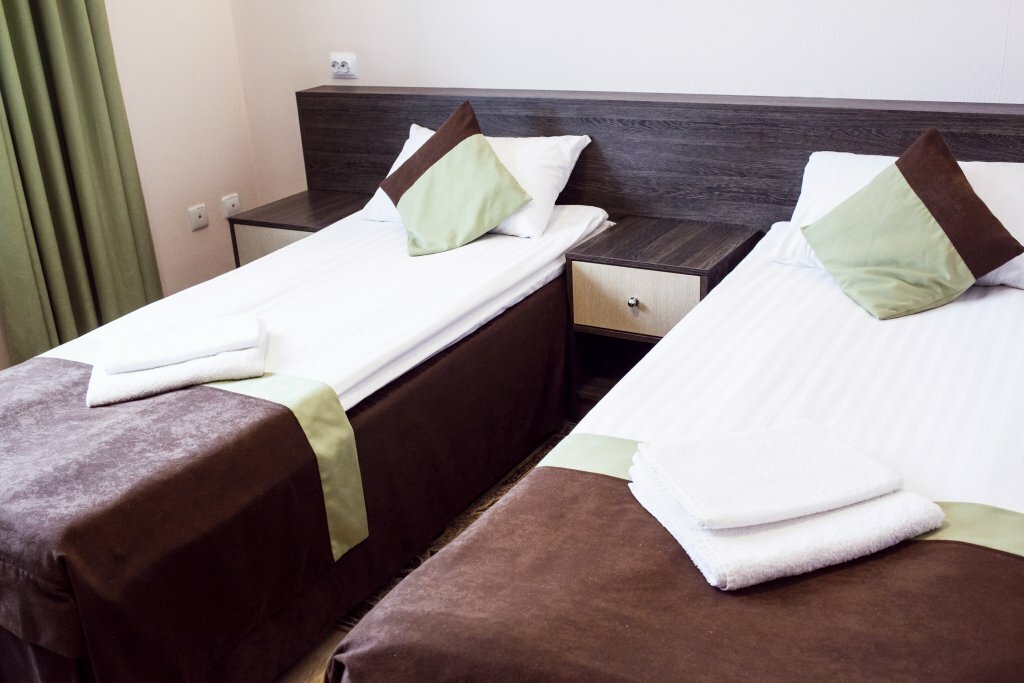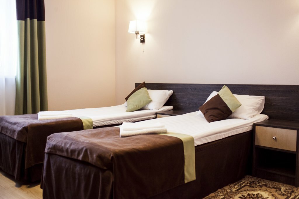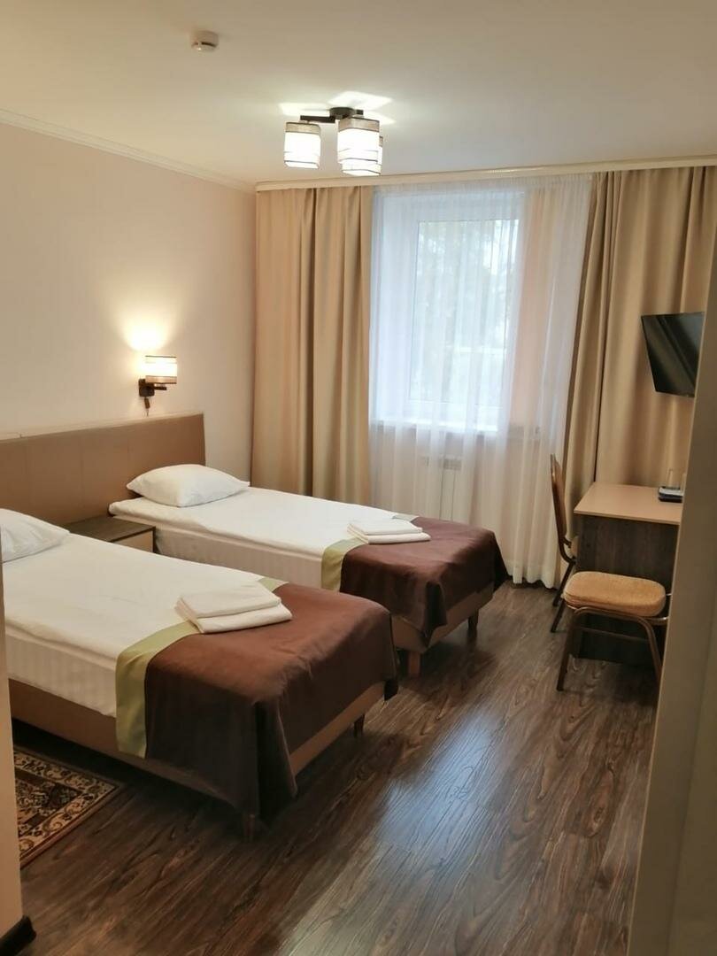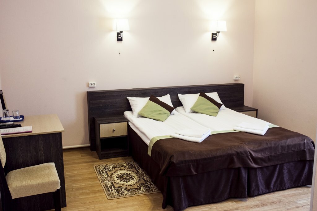 В отеле 14 номеров категории Стандарт. В каждом номере:две односпальные кровати, ТВ. стол и 2 стула, шкаф для белья,туалетная комната совмещенная: душ, туалет, фенПодробности по телефону: 8 911 661 45 16