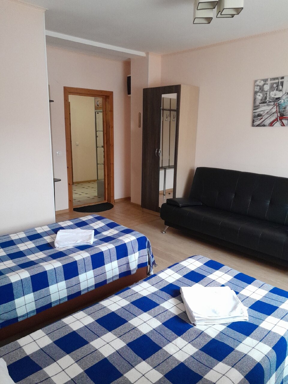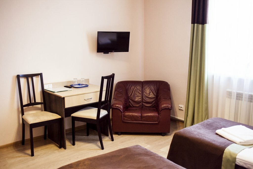 Площадь номера – 21 кв метр.В номере:две односпальные кровати,двухспальный диван,стол, стулья,ЖК-телевизор,шкаф для одежды,душ, туалетПодробности по телефону: 8 911 661 45 16