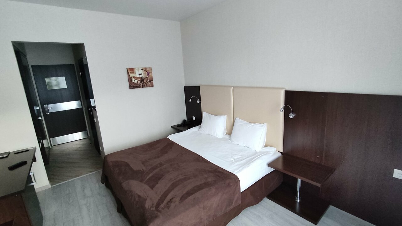 Отель за чертой города. Отличный персонал, завтраки хороши, чистые и современные номера. Тихо по ночам. Матрацы плохие.