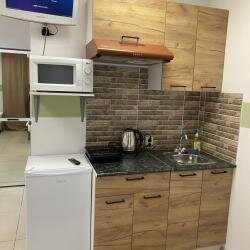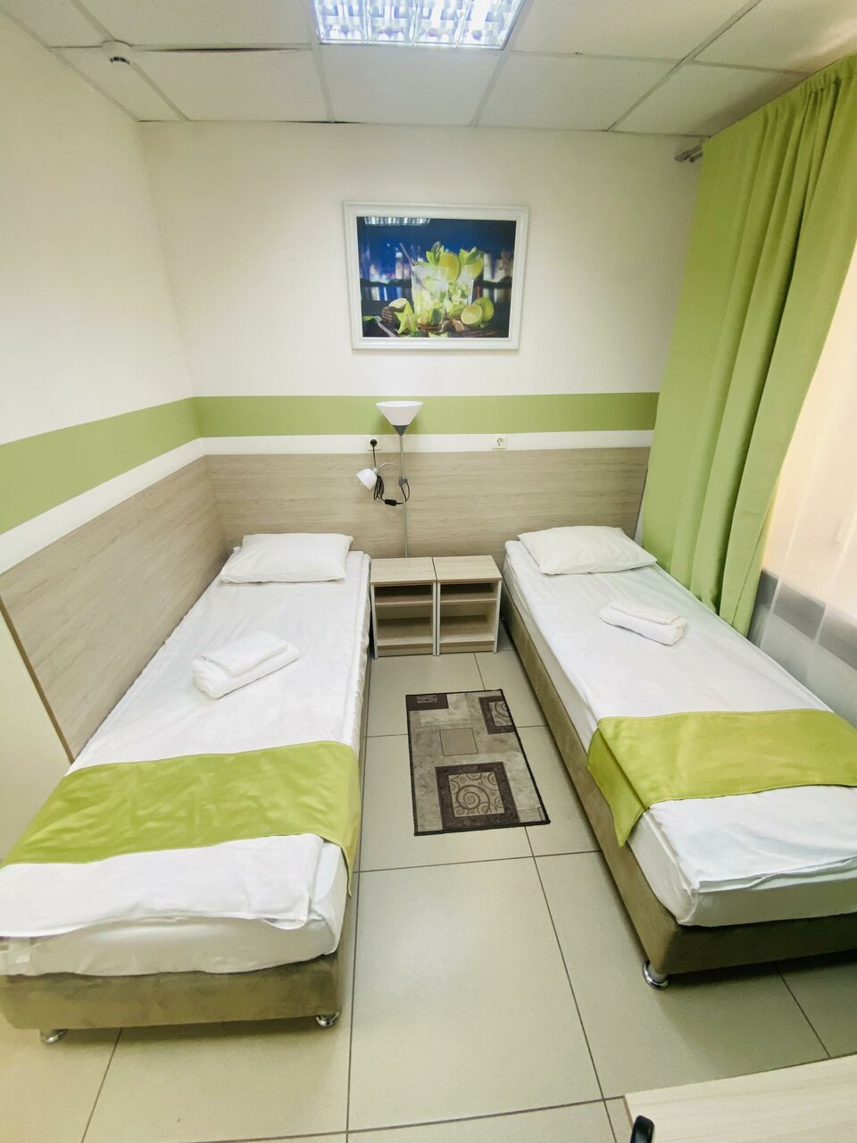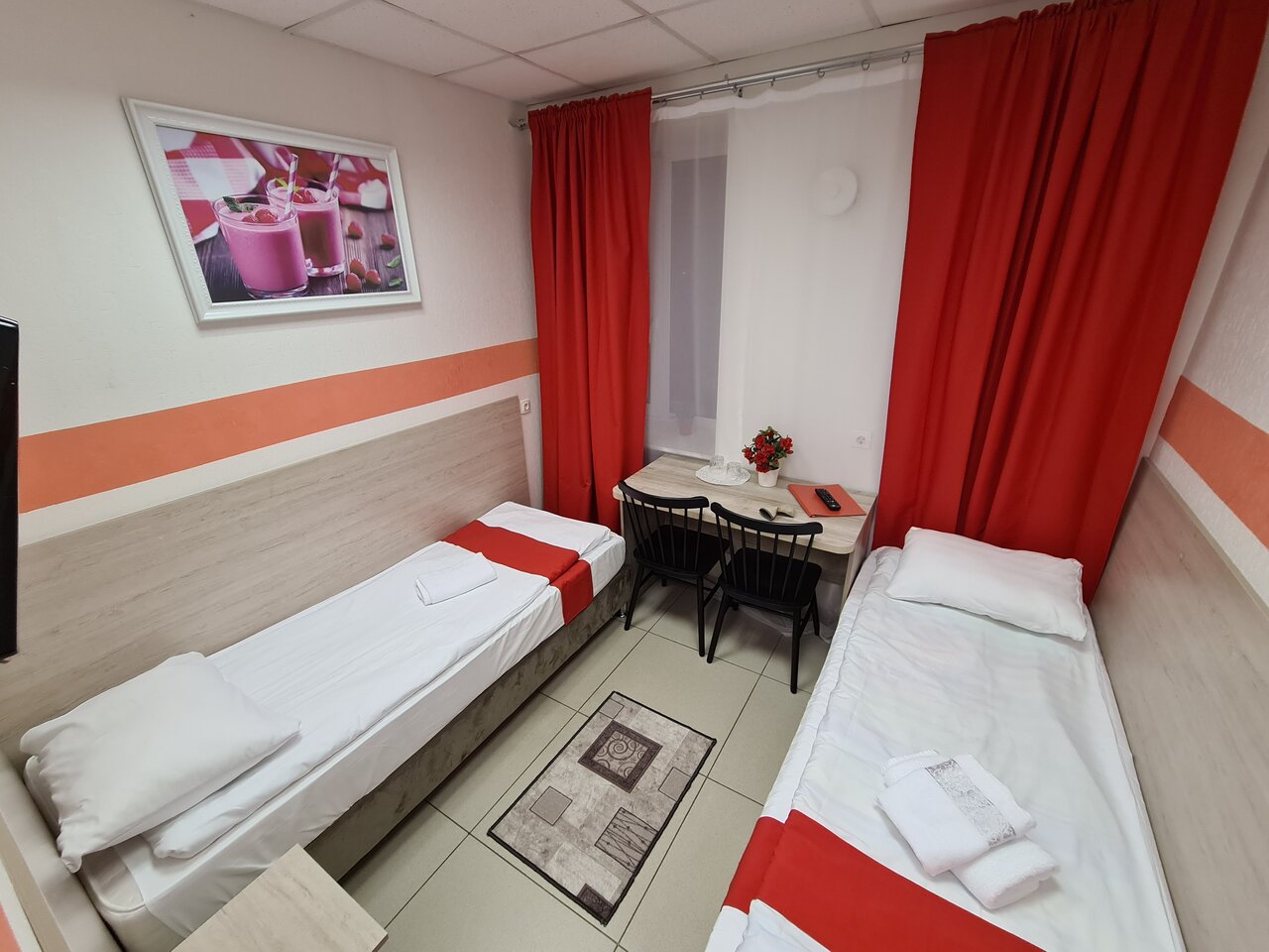 Выбрали данный отель для одной ночевки. По цене вышло дешевле, чем в других местах. Есть общая зона с холодильником, микроволновкой, чайником и одноразовой посудой. У нас был первый номер, там для двоих было достаточно просторно. В номерах были одноразовые тапочки. Матрасы удобные. В ванной комнате раковина расположена низко и можно удариться об стеклянную полку сверху. На стенах какие-то волосы прилипли и в углу у душевого поддона плесень. Нет полочек куда поставить душевые принадлежности. В номере ОЧЕНЬ хорошая слышимость. UPD: останавливались еще в апартаментах. Все новое, чистое, кроме дырявых наволочек.