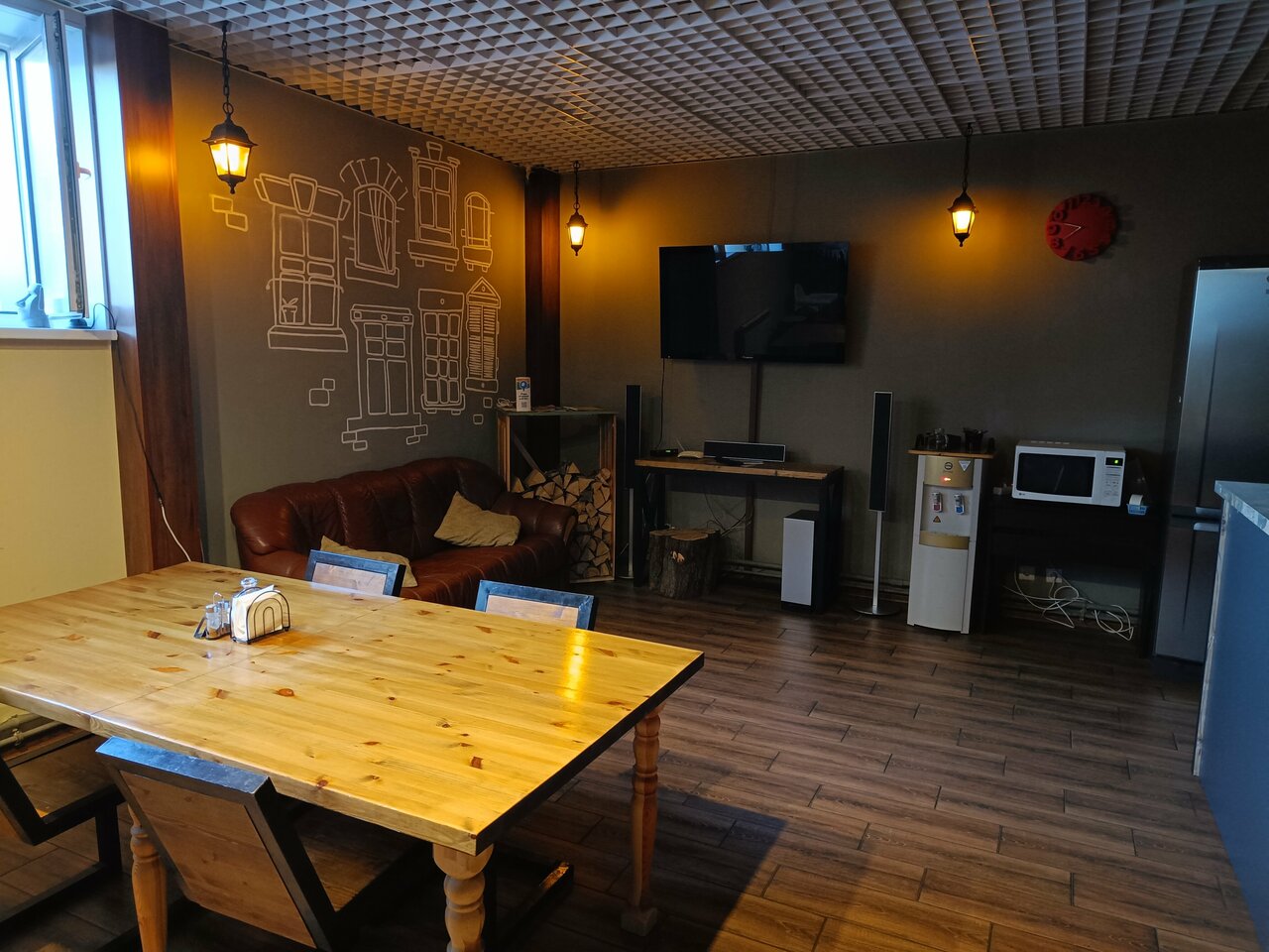 - Наличие общей кухни с необходимой посудой и техникой (холодильник, микроволновка, чайник).