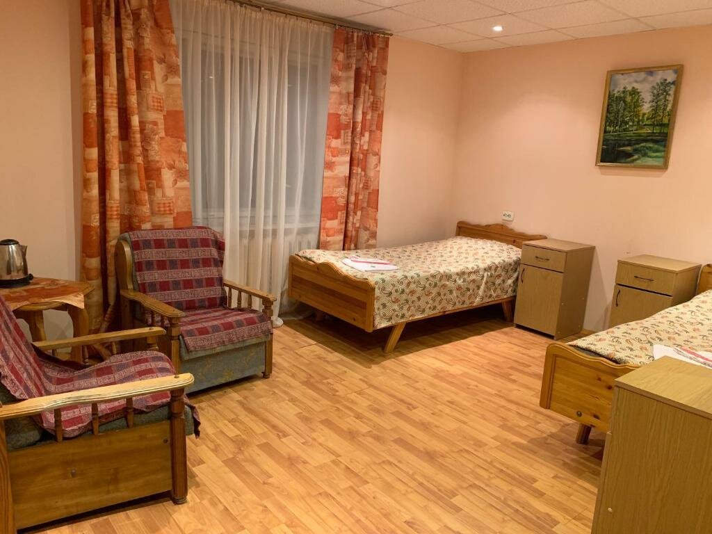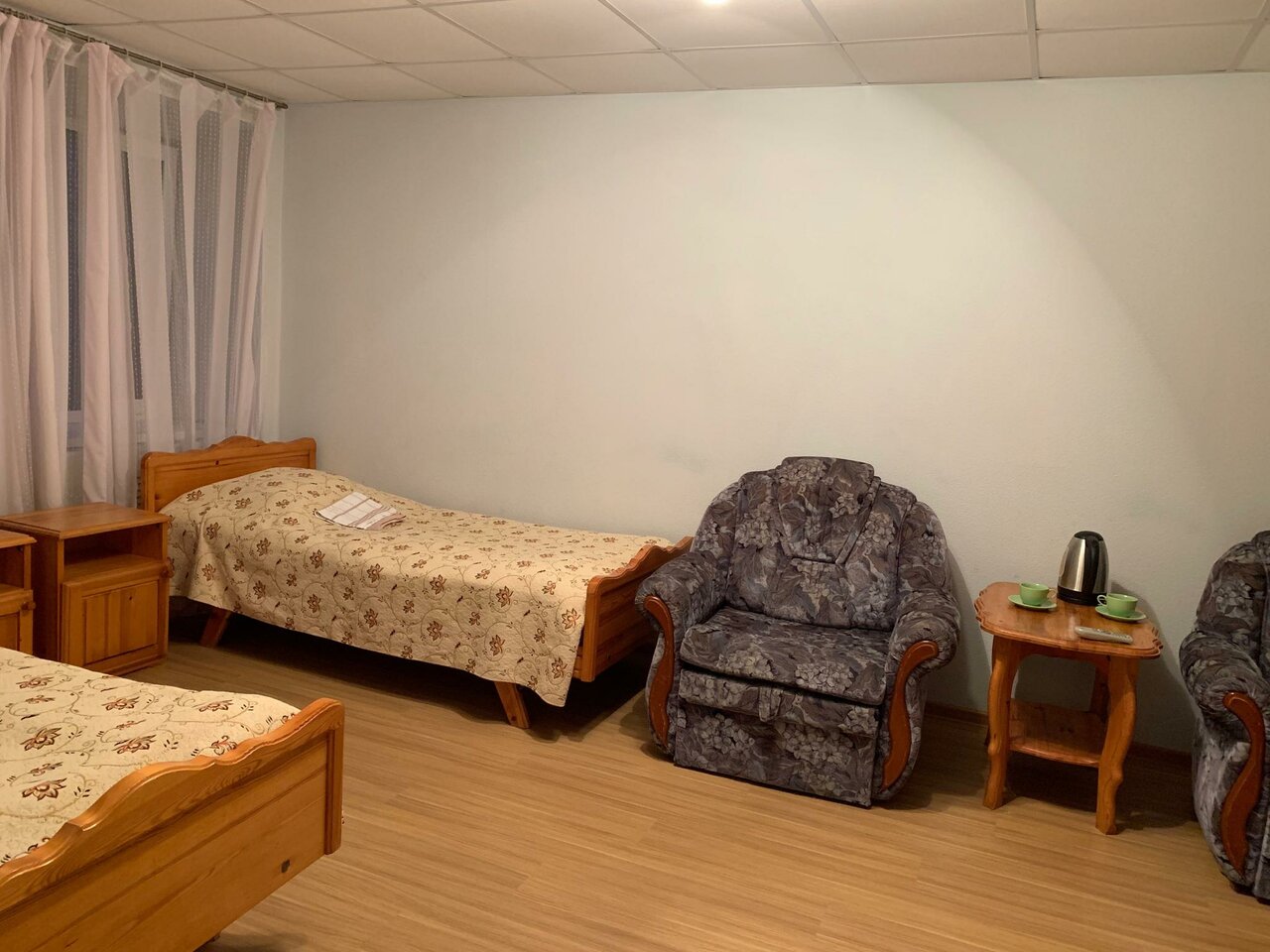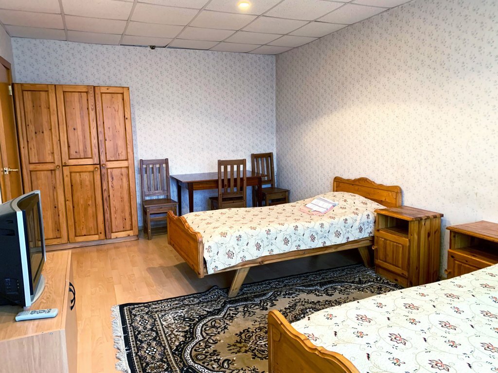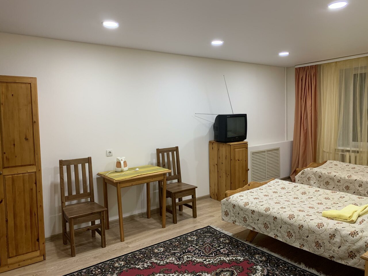 Персонал очень приветливый и дружелюбный. Номер,отличный — идеально чистый, хороший ремонт,ванная комната с новой современной душевой кабиной, феном + холодильник, чайник, телевизор. Кровать большая,комфортная, на одного 3 полотенца. Есть большой шкаф, столик, новый диван. Так же есть общая кухня на этаже со всем необходимым — стиральной машинкой+ есть гладильная комната, где можно погладить вещи.Хорошо, чисто, уютно,рекомендую.