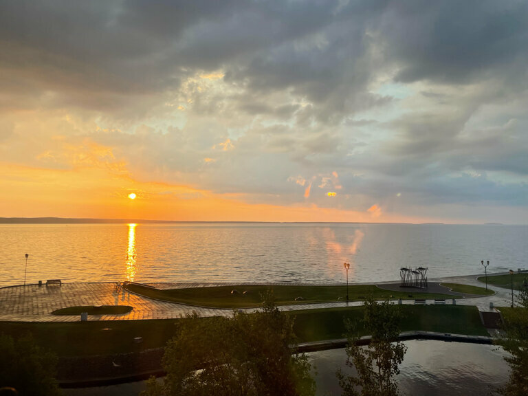 Отличное место для отдыха. Отель расположен на первой береговой линии. Окна нашего номера выходили на Онежское озеро. С погодой нам повезло, поэтому вечерние закаты и утренние рассветы, очень красиво. В отеле очень доброжелательная атмосфера. Вкусные завтраки( шведский стол), чистый и аккуратный номер. Всё очень понравилось.