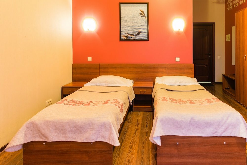 Плохая шумоизоляция, слышно было как соседи ходят ночью в туалет. С половины пятого ночи начинают орать чайки, буквально орать без остановки, а окна не закрыть, батарея без регулятора, кондея нет, жарко становится. Одела синтетические, в темноте летят искры, подушки очень высокие и сбитые, спишь как на бревне. Зато красивый вид из окна, удобная парковка и вежливые девушки-администраторы.
