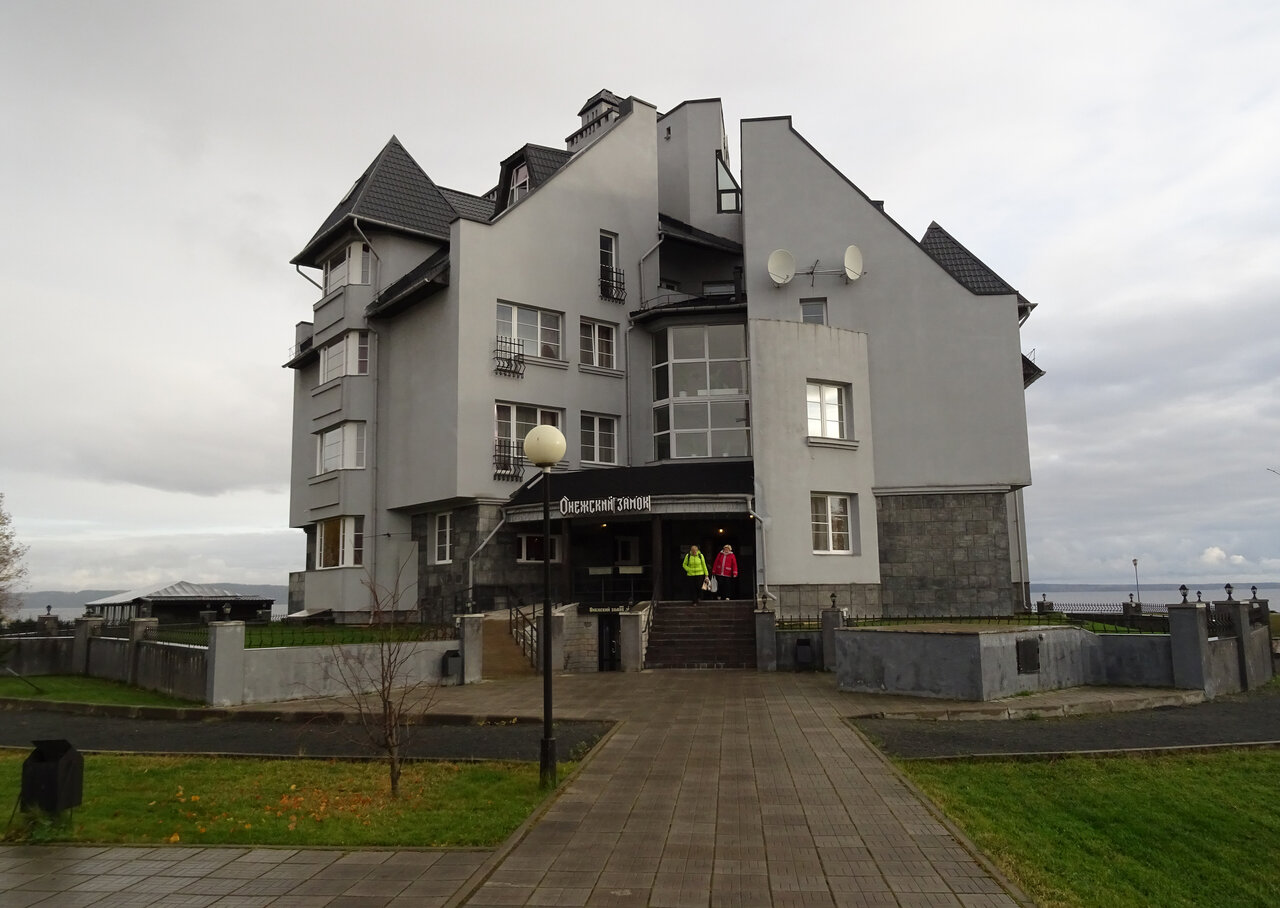 Гостиница очень хорошая, уютные номера, высокие потолки, тишина. Расположена на берегу Онеги, красивый вид, приветливый персонал. Но питание в ресторане настолько скромненькое, сразу тебя отбрасывает в ‘совок’, выбора почти никакого, молочные продукты на завтрак отсутстуют, фруктов не подают, местные продукты и блюда отсутствуют, выбор на шведском столе практически отсутствует.