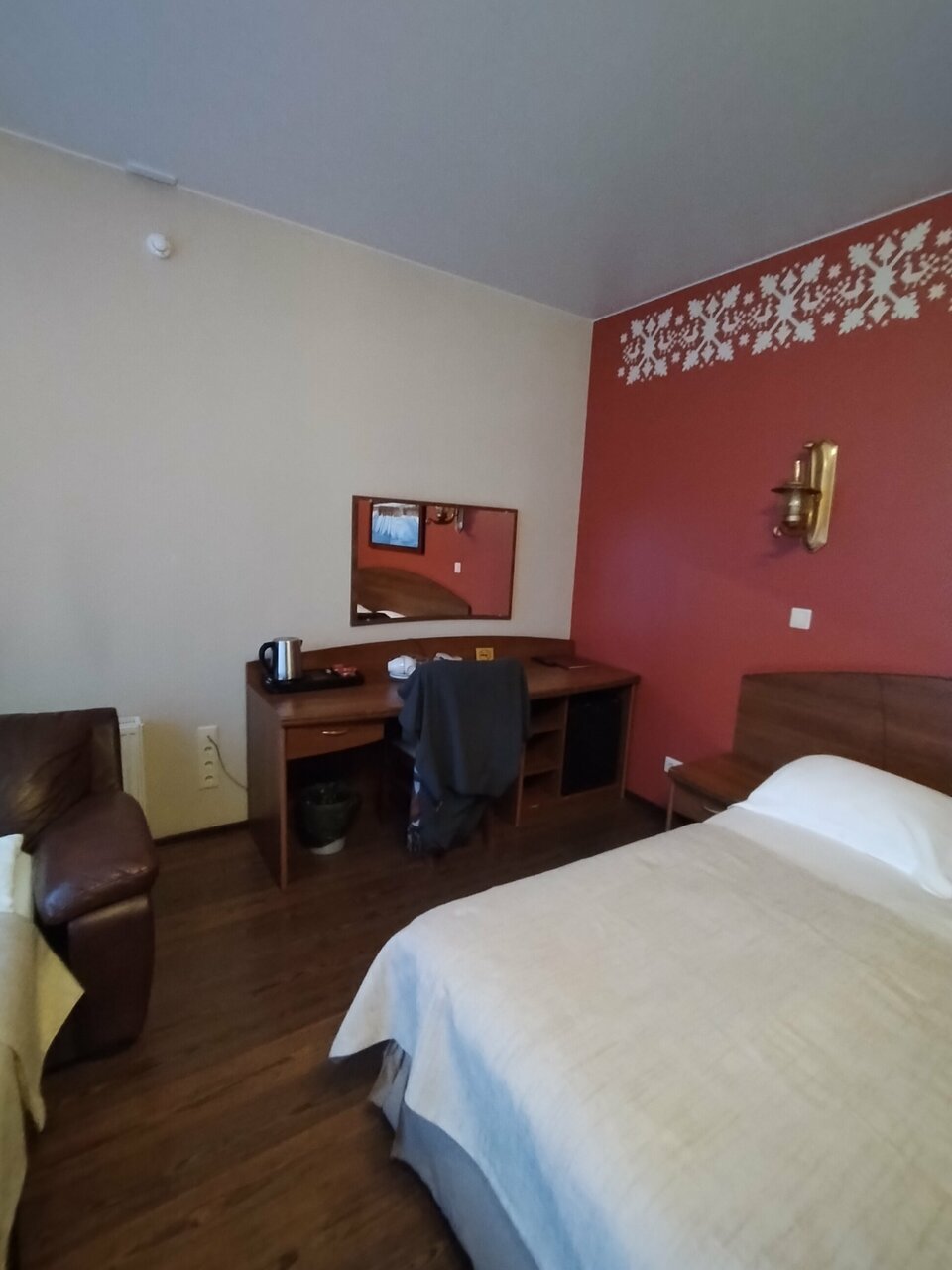 Оставались в полулюкс на первом этаже. Чисто, просторно, потрясающий вид из окна как бонус. Очень понравилось, что комната трапециевидной формы. Чайник, халаты, постель все есть. Чистенько, комфортно, уютно. Из минусов: -нестабильная горячая вода. Она не прям холодная но после прогулок на горячий душ рассчитывать не надо. Отмыться пожалуйста, но зависнуть в душе не получится. - плохая шумоизоляция, слышно, как включают душ в соседнем номере. Нам повезло, что соседи были не сильно громкие и ложились спать достаточно рано) - в соседнем ресторане по выходным дискотеки, нам не мешало, но у кого окна будут не только на озеро, наверное будет мешать.