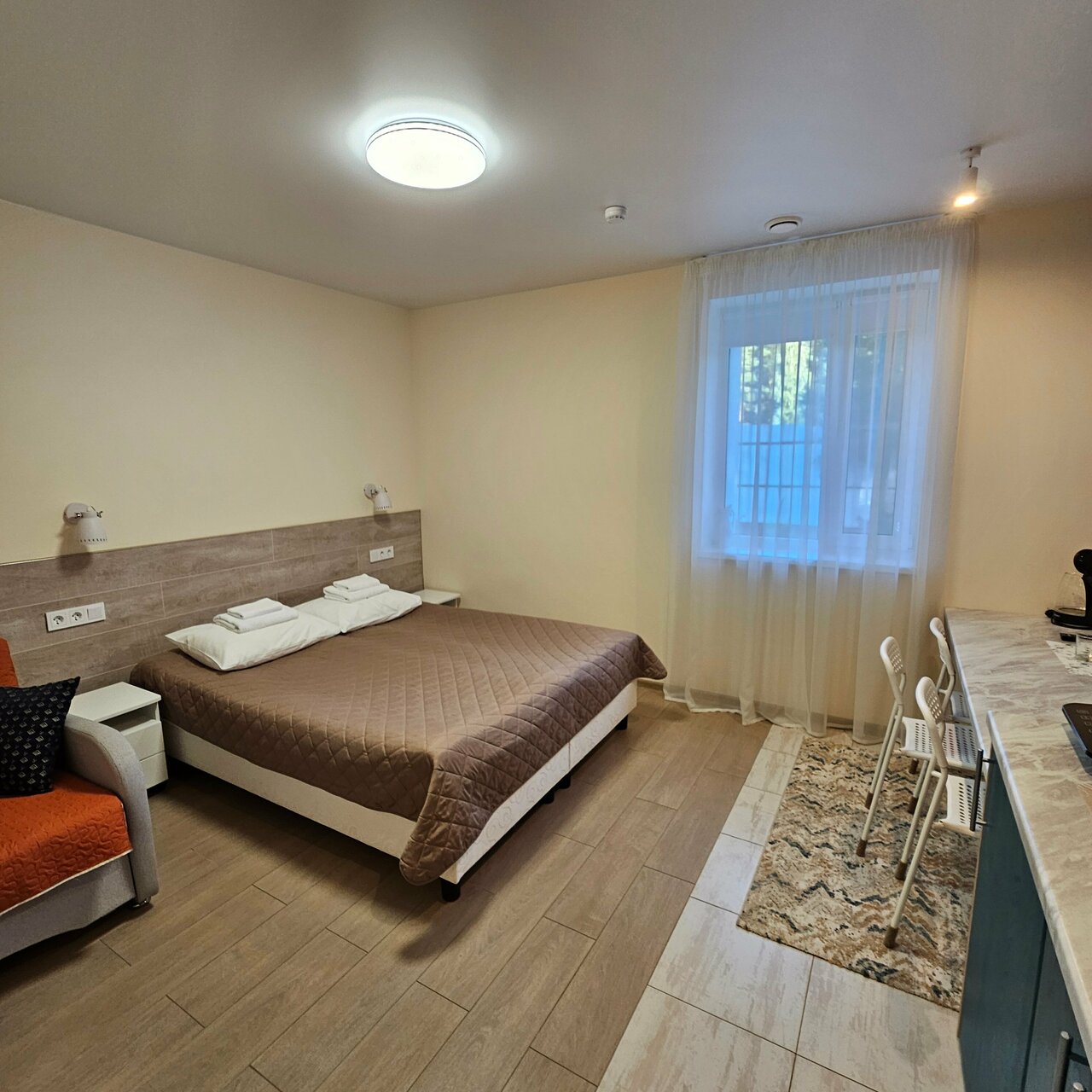 Отличный отель. Все чисто, уютно, сделано со вкусом. Приятный дизайн, новая мебель, белоснежные пушистые полотенца. Персонал вежливый и дружелюбный. К уборке нареканий не было. Был приятно удивлен бесплатным вай-фаем с хорошей скоростью и наличием парковки. Отдельная кухонная зона стоит особого внимания. Останавливаюсь не в первый раз.