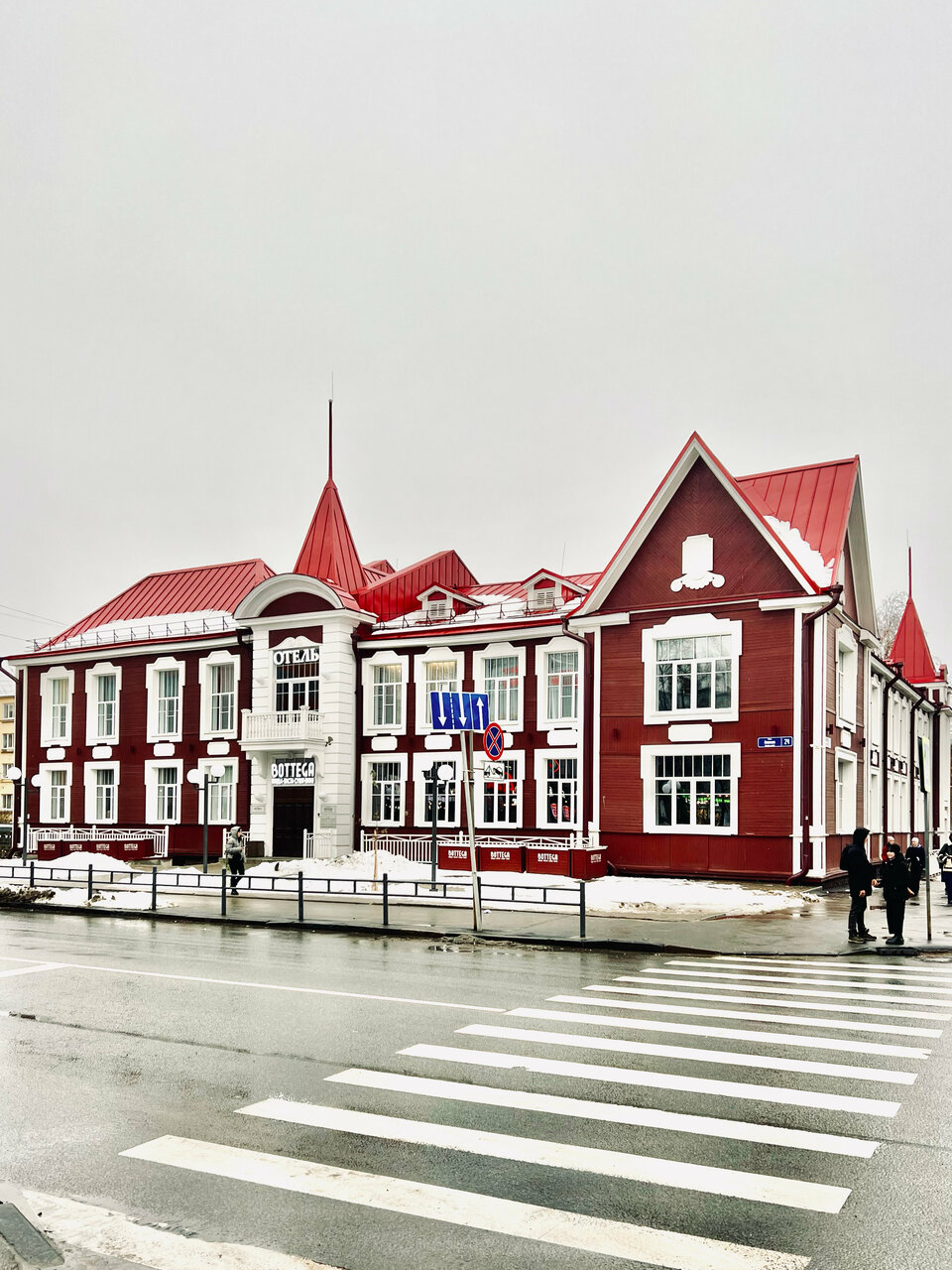 Гостиница находиться на главной улице города.Рядом вокзал и пятнадцать минут ходьбы до озера! Номера приличные, в кафе кормят вкусно!!!