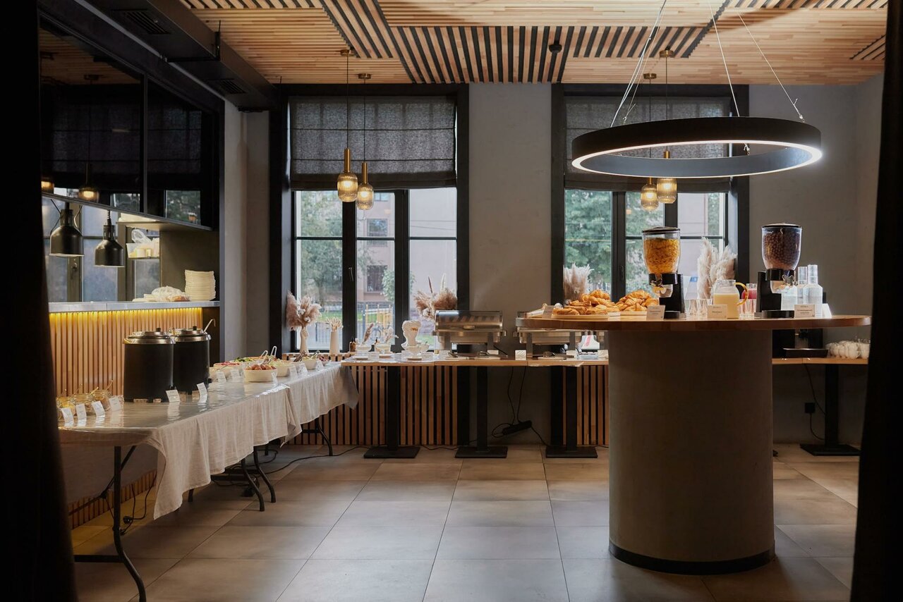 Отель новый, чисто в номерах. Расположен на 2 этаже, лифта нет. Санузел микроскопический. В дозатор геля для душа изначально была залива вода, пришлось бежать на ресепшн, просить заменить пакет в обмывочной водой на пакет с гелем. Попросили вечером вазу для цветов, во всем отеле не нашлось вазы. До утра, говорят, подождите. Завтраки в ресторане на 1 этаже — это шедевр. Нужно заранее выбрать из 4х опций по принципу ‘шаг влево, шаг вправо — расстрел’. Если у гостя аллегия, этот продукт просто убирается, никаких замен и индивидуальных решений. Просто за те же деньги вы получаете нано-порцию: грамм 70 яичницы, 3 тоненьких кусочка пересоленой форели, 2 тоста, 1 разрезанный черри. На вопрос на ресепшн, как этим можно наесться, простой ответ: вы же от рукколы отказались.