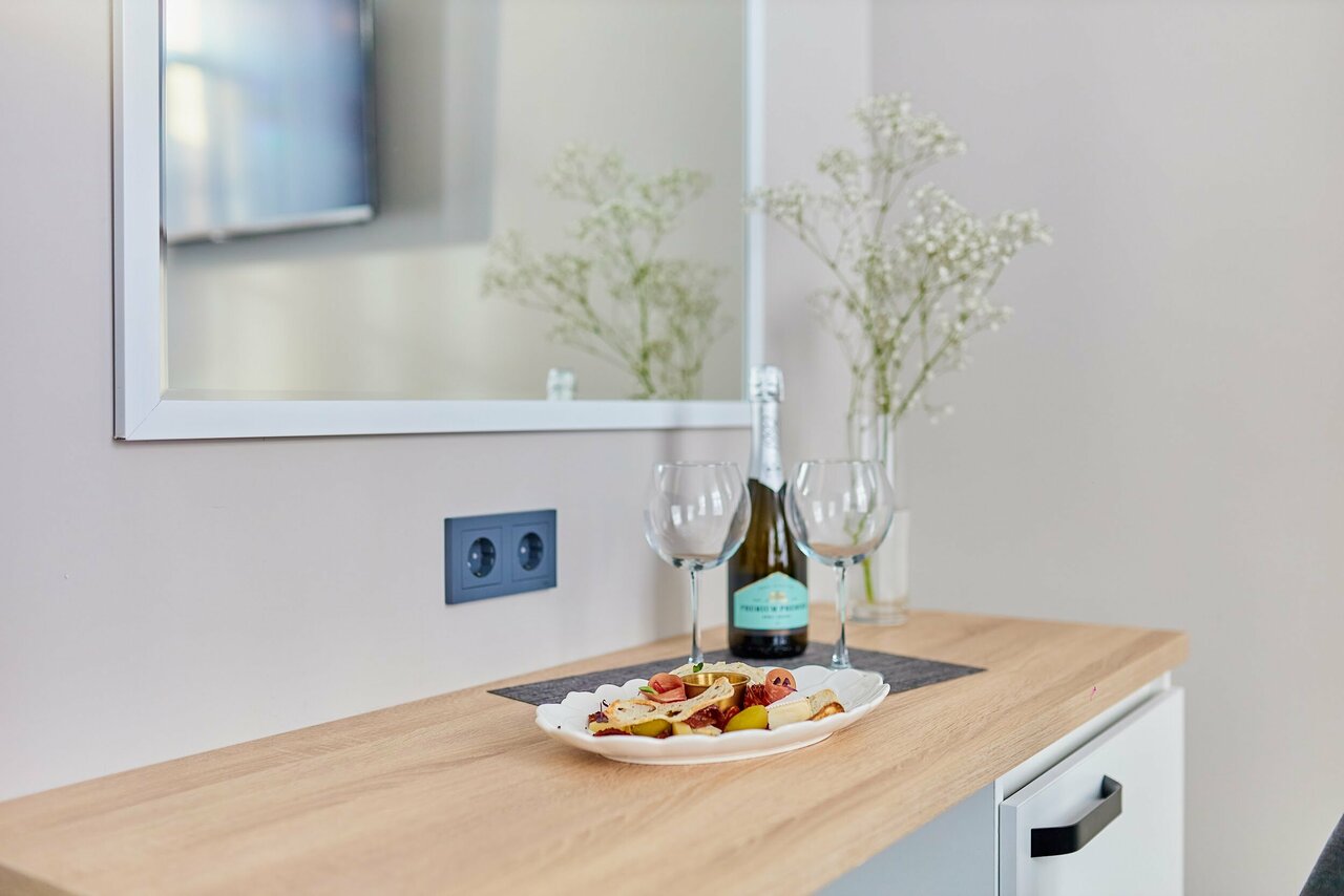 Современный и просторный номер площадью 20 кв. мОснащен одной двуспальной или двумя раздельными кроватями, кондиционером, телевизором с плоским экраном, холодильником и собственной ванной комнатойВ каждом номере есть рабочее место, шкаф, чайная ...