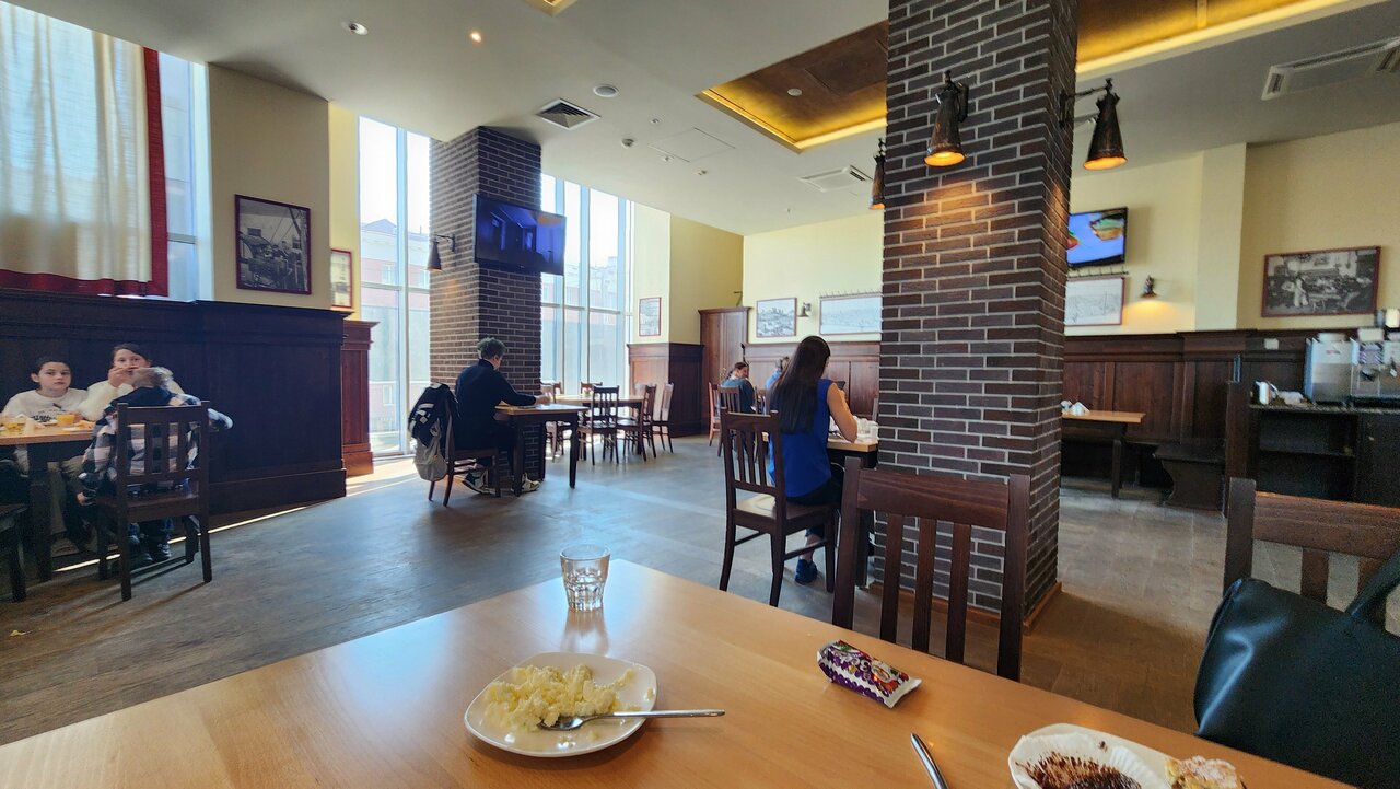Хорошая гостиница прямо возле вокзала, чистая и уютная. Персонал вежливый и отзывчивый. Современные номера, минус только в отношении ванной — вода долго не уходила в душевой и пол был залит водой, но возможно это мне просто не повезло. А в остальном все комфортно, чисто и уютно. Хороший шведский стол на завтрак, выбор большой (каша, омлет, сосиски, нарезки, творожная запеканка, салаты, гарнир, курица, блины, булочки, фрукты, овощи, чай, кофе, сок и т.д.) Вечером решили поужинать и осталось приятное впечатление. Всё было вкусно, порции большие, а десерт жаренный сулугуни с грушей и клубникой под карамелью просто бесподобный!!!!!! Утром уезжали на 6:36 обратно в Москву, девочки подготовили отчётные документы и ланч бокс (тост с нарезкой и огурчиками, овощи, бутылка воды, булочка и сухофрукты) к 6:00. Хорошая гостиница с отличным местом расположения. Если приеду ещё раз в Петрозаводск то только в эту гостиницу!!!
