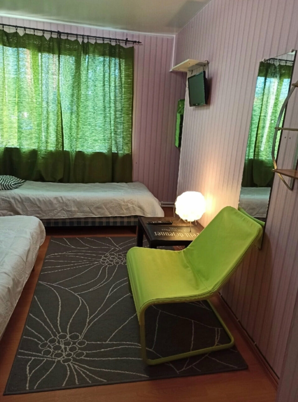Семейный номер на 6 человек с собственным душем и туалетом. В номере есть холодильник, чайник, микроволновка.