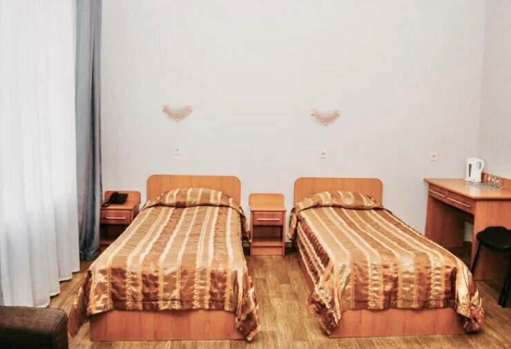 Двухместные номера со всеми удобствами, расположены на первом и втором этажах гостиницы. Окна выходят на улицу Чапаева или в тихий двор.Высокие потолки, две одноместные кровати, телевизор, рабочий стол, телефон, санузел, душевая кабина, чайник, фен
