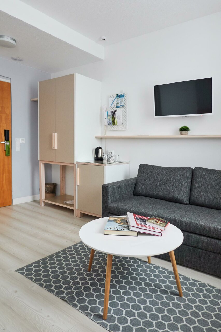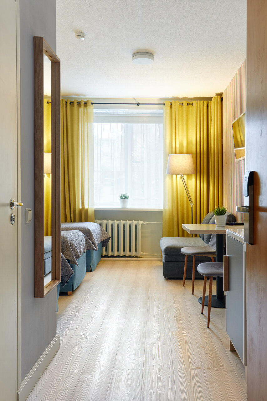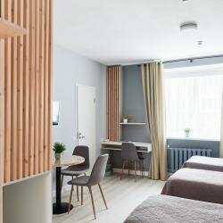 Отель расположен в пешей доступности от основных достопримечательностей и недалеко от променада по Онежской набережной. Номера расположены на первом этаже жилого дома. Интерьер отеля выполнен в сдержанном скандинавском стиле: деревянная мебель, натуральные ткани, лаконичные картинки в рамках. Обстановка в номере современная, все в отличном состоянии, кровать мягкая, есть чайный набор (без наполнения). Завтрак по-домашнему вкусный, ничего лишнего, все свежее. Интернет отличный. Прекрасный вариант, чтобы остановиться на несколько дней для знакомства с Петрозаводском.