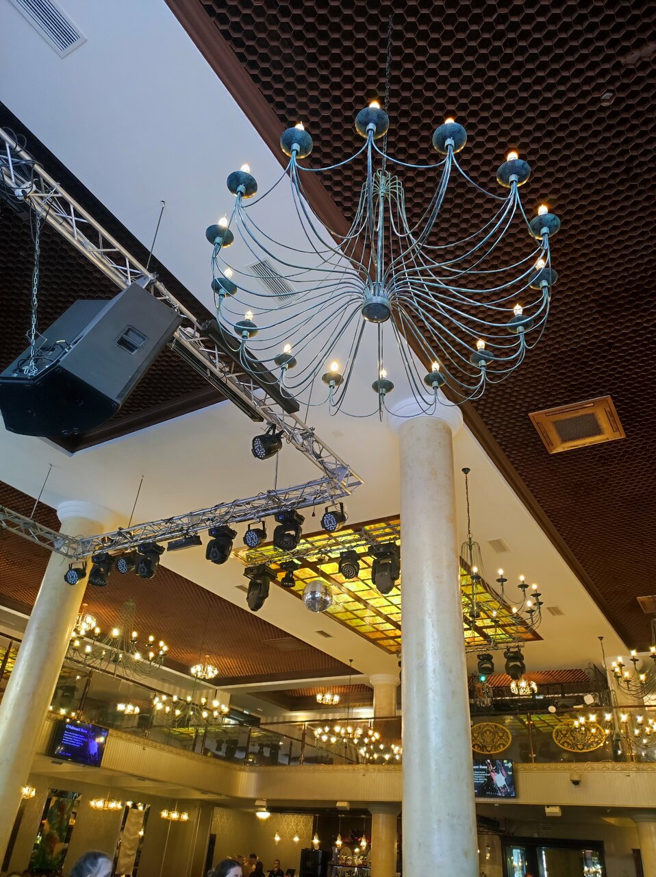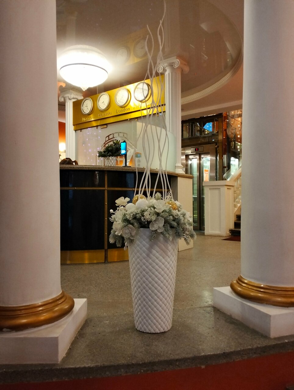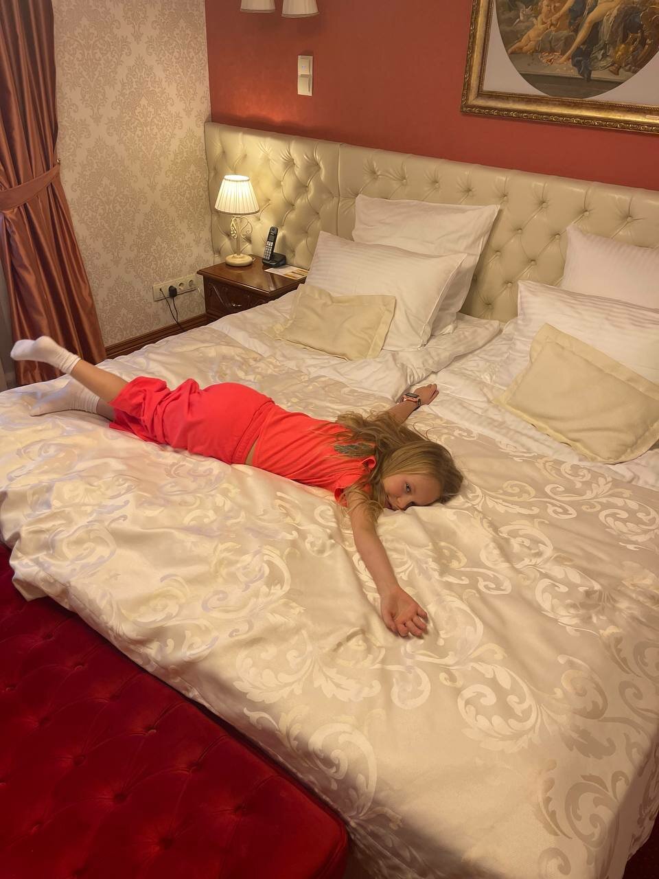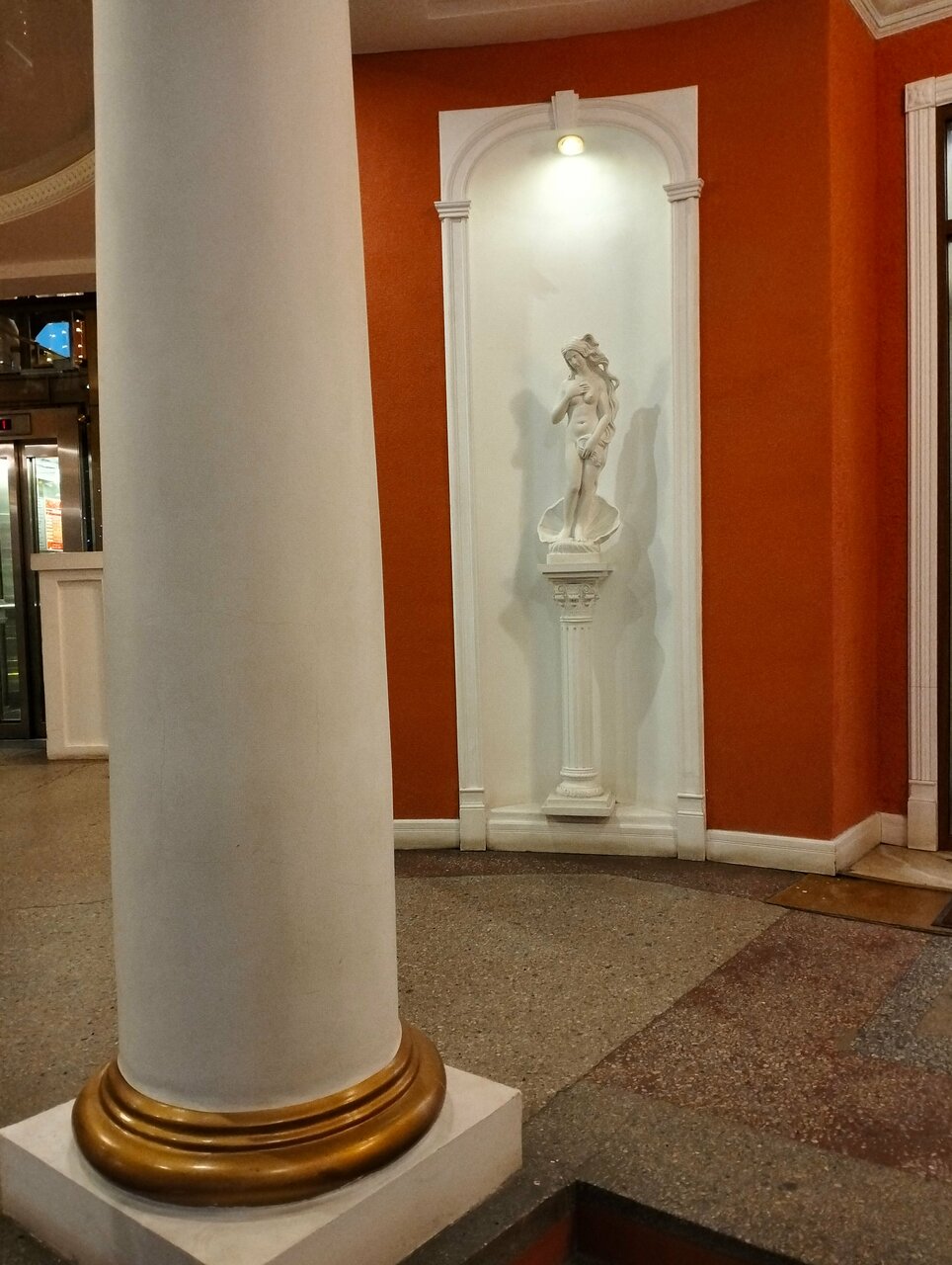 Замечательное расположение: 15 минут до Онеги, вид в перспективе по проспекту вождя пролетариата, как на крымском курорте, и при этом ты в центре города: магазины, кофейни, рестораны… Номер был в стиле убийственного ‘барококо’: четыре картины, пробуждающие в госте лёгкие эротические волнения. В предыдущих жильцах волнения дошли до точки кипения: на пол был разлит литр… вишнёвого сока, лазерная панель приведена в негодность. Номер, конечно, убрали: ковер можно было отжимать, панель имелась ещё и в спальне, кондиционер чинили на ходу. А в общем, полулюкс соответствовал уровню. Норм. Шведский стол скромный. Но в принципе тоже норм. Фотографии многочисленных ‘звездей’ на стенах убедительно свидетельствовали: заявленные отельные звёзды соответствуют.