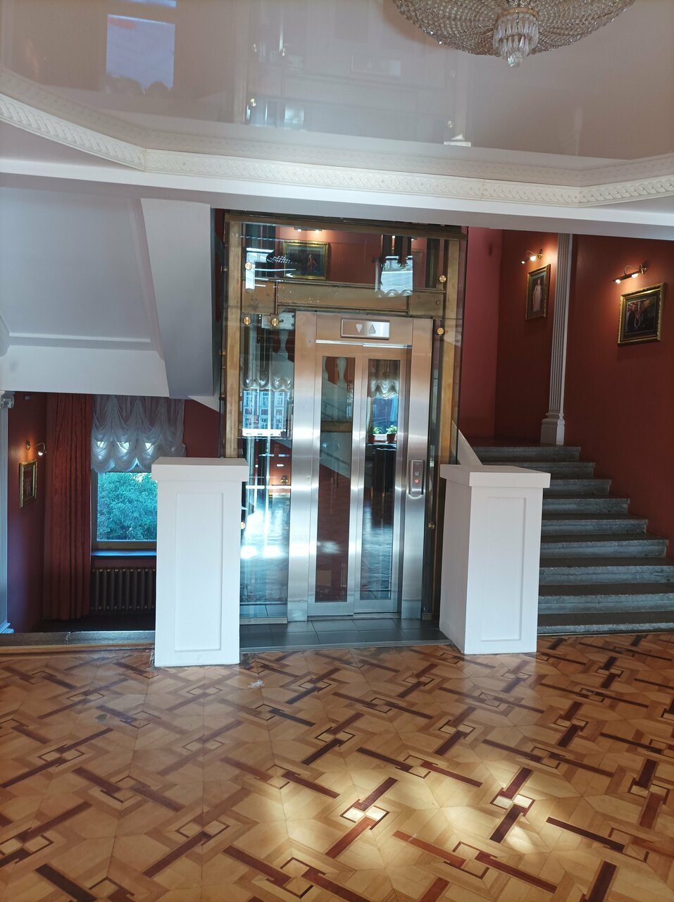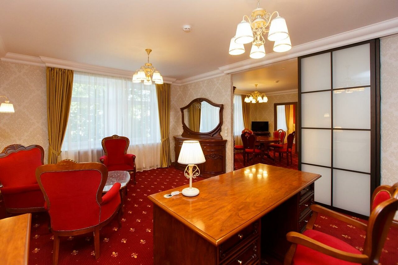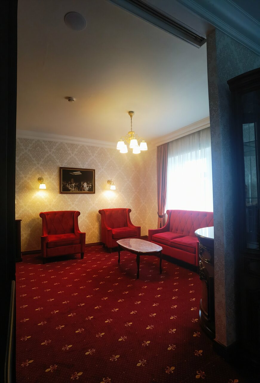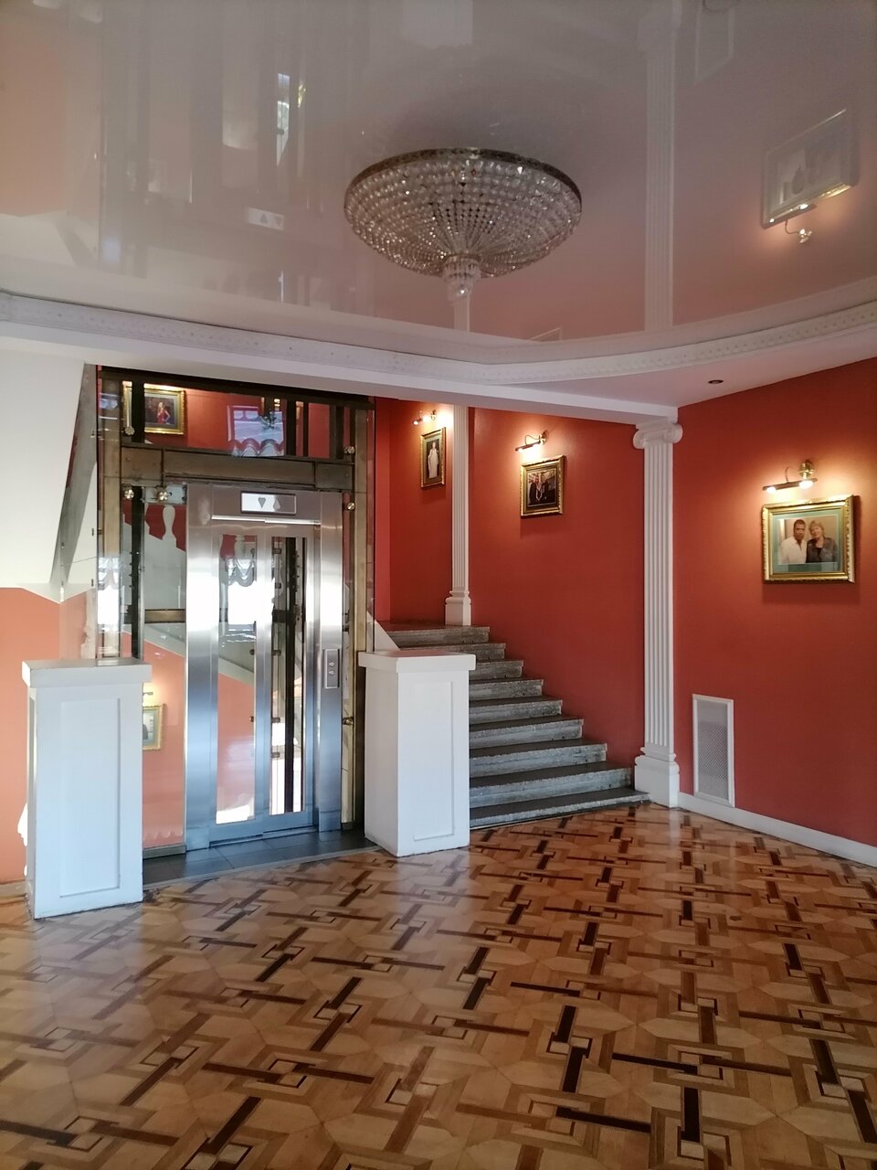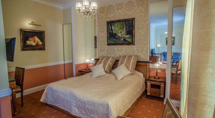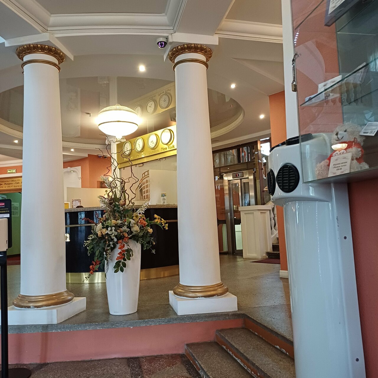 Хорошая гостиница — одна из достопримечательностей города. Очень красивые интерьеры, номера большие и чистые, цены приемлемые. Но есть минусы. Во-первых, не во всех двухкомнатных номерах есть дверь между комнатами, хотелось бы, чтобы это было указано изначально в описании номера! Не хватает кулера с водой в коридоре, приходится набирать воду из-под крана. Ещё не самые лучшие завтраки, они, конечно, нормальные, но каша, например, вообще непонятно какого качества, колбаса также, сливочное масло! В общем хорошая гостиница, но есть несколько нюансов!