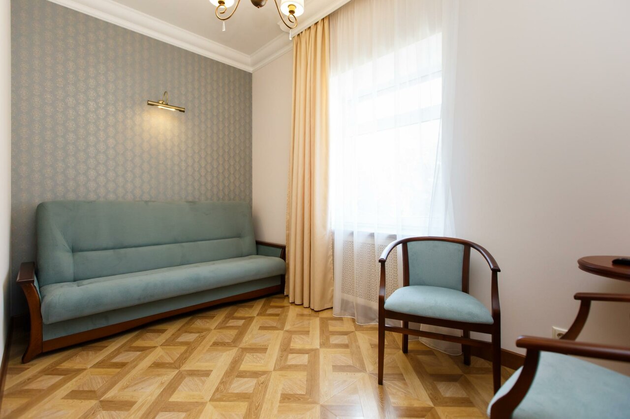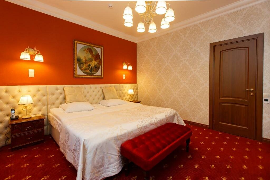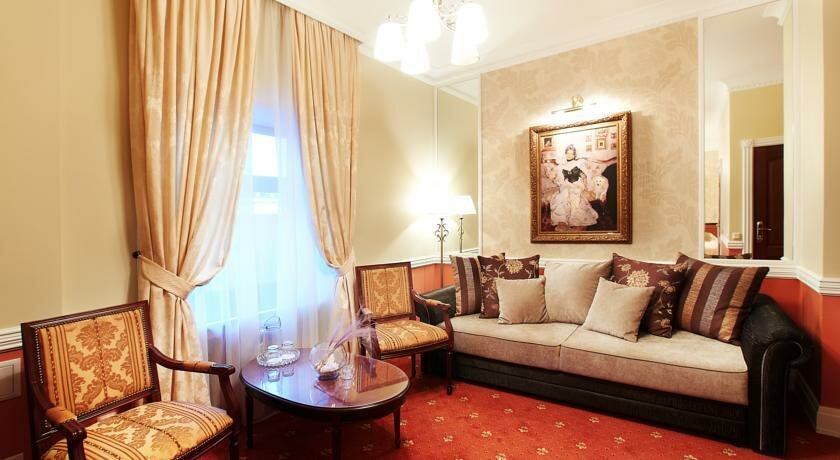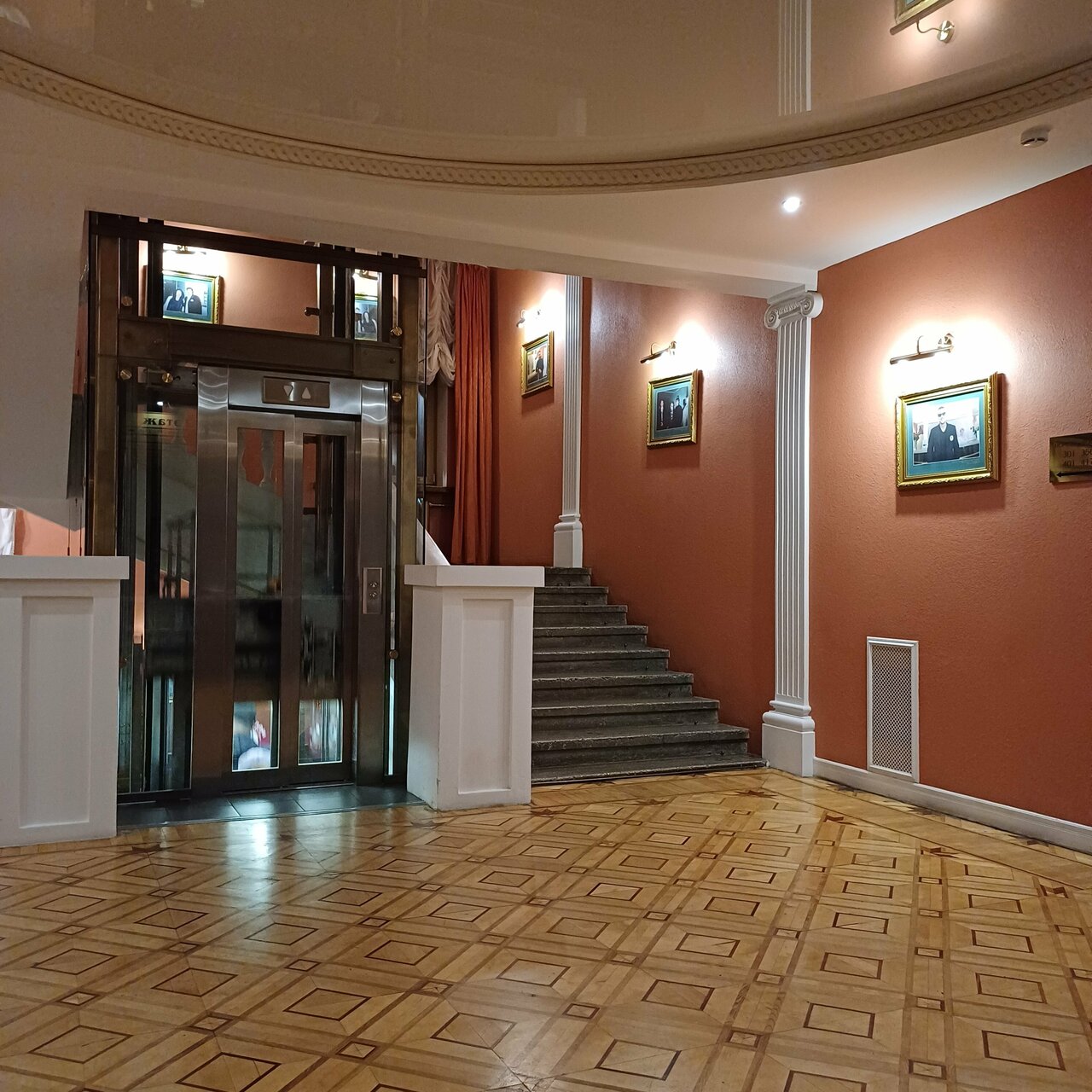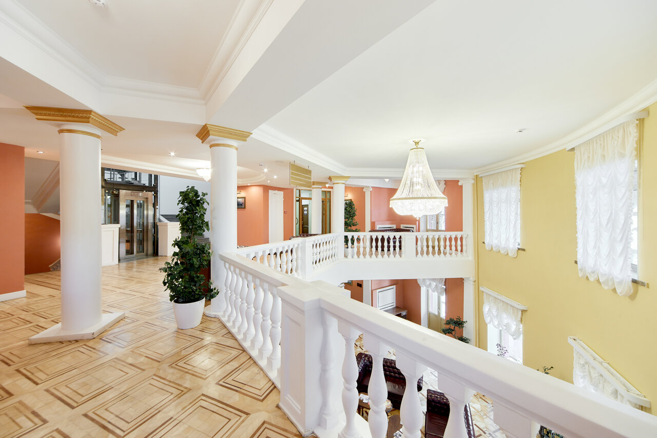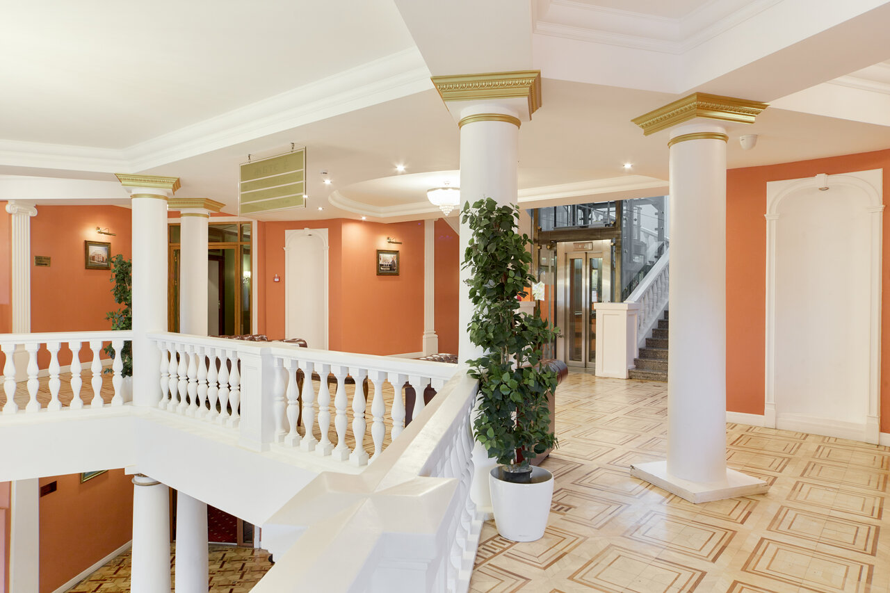 Хорошая гостиница — одна из достопримечательностей города. Очень красивые интерьеры, номера большие и чистые, цены приемлемые. Но есть минусы. Во-первых, не во всех двухкомнатных номерах есть дверь между комнатами, хотелось бы, чтобы это было указано изначально в описании номера! Не хватает кулера с водой в коридоре, приходится набирать воду из-под крана. Ещё не самые лучшие завтраки, они, конечно, нормальные, но каша, например, вообще непонятно какого качества, колбаса также, сливочное масло! В общем хорошая гостиница, но есть несколько нюансов!