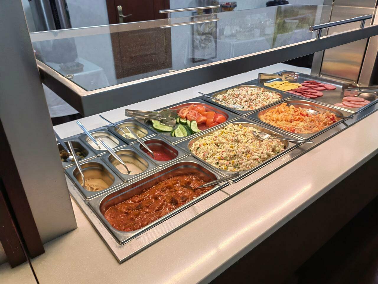 Проживала в номере категории люкс — все хорошо, кроме ковролина на полу, хотя для кого-то это плюс. Завтраки не понравились. Еда вроде есть, но все в основном холодное и какое-то бездушное. Яичницу быстро разбирают и больше не жарят, хотя время только 9.30, а завтраки до 11. Салаты почти все и всегда майонезные. Выпечка холодная, жесткая, резиновая. Вареные яйца ледяные. В ресторане отеля тоже не вкусно, оформление блюд как в 90х, интерьер не уютный.