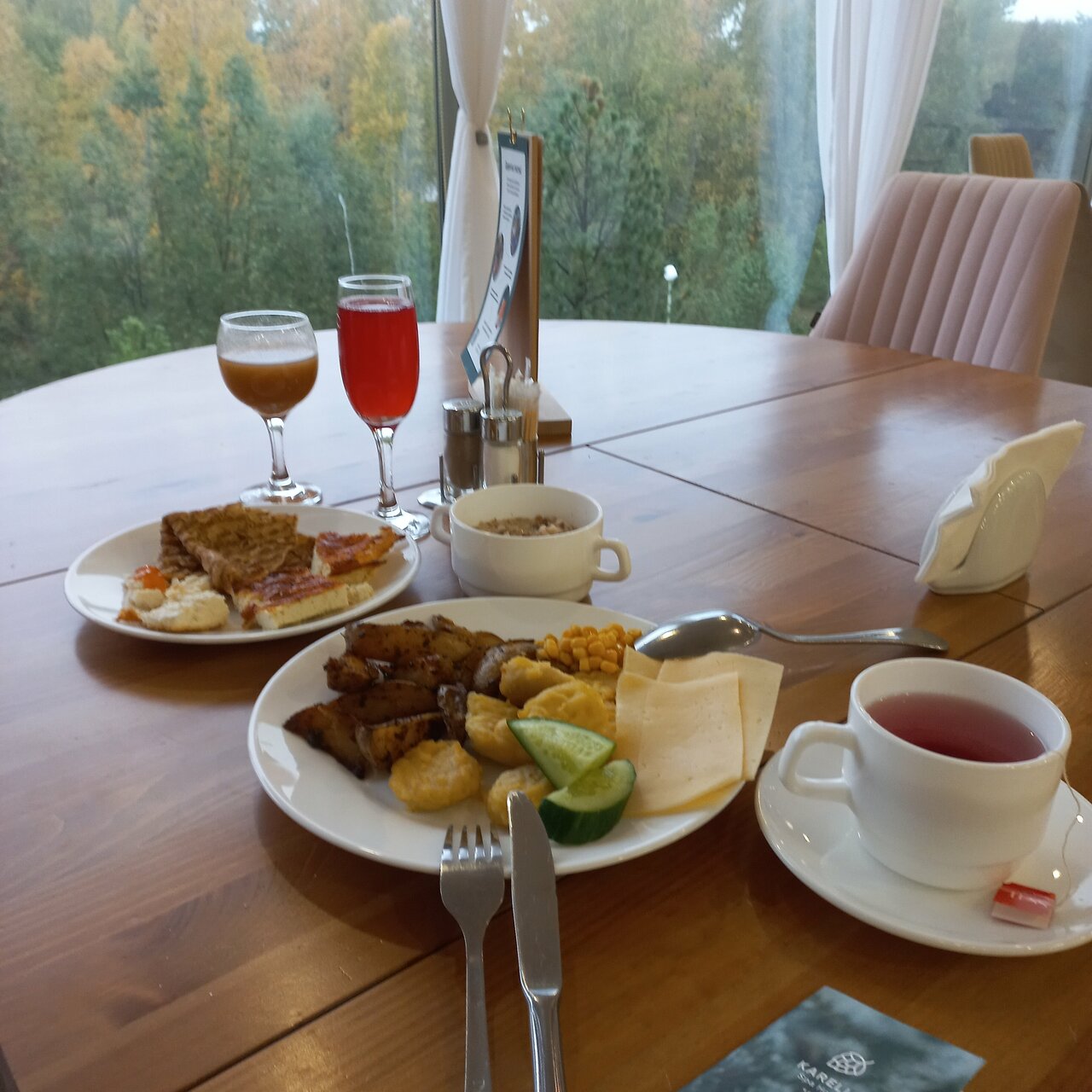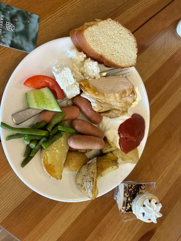 Самой гостинице и ресторану поставил бы 5 звезд. Номера чистые, новый ремонт, водичка, уборка — нет вопросов. Ресторан — все приветливые и быстрые, блюда традиционной карельской кухни с авторским окарасом — вкусно, все что пробовал. А вот ‘СПА’…. полное фуфло! Спустился из номера в холате и предложенных отелем тапочках на лифте в ‘СПА’, на ресепшене сказалии- а к нам нельзя в одноразовых тапочках, но у нас есть за 400 р. в которых можно, или идите за своими другими(?) обратно.. 2 сауны на 2-х человек(!), бассейн 34 метра, в котором 6 чел — уже ад. Вообшем ‘СПА’ — 1 звезда(чисто:). В итоге СПА отелю — 3 звезды.