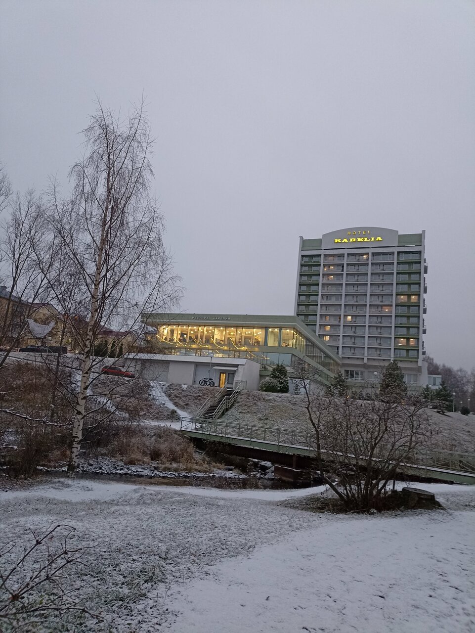 Нам порекомендовали этот спа отель друзья и мы остались в полном восторге, у нас был номер на 10 этаже, чисто, вид из окна на озеро и маленькую ферму с пони ; кровать шикарная, очень комфортная и удобная, с белоснежным бельем, с 8 до 11 гостям отеля бесплатно можно посещать бассейн и сауну на первом этаже , шведский завтрак с шампанским и огромным выбором разнообразных вкусных блюд, кофе, десертики с видом на ручей , спа — процедуры просто бомба, а тайские женщины волшебницы- я делала тайский массаж восточное наслаждение , Карелия и зимой великолепна, с собой купили сувенир из местного камня Шунгит и конечно местный вкуснейший бальзам )) обязательно вернемся летом) спасибо за гостеприимство