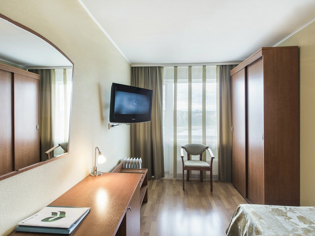 Плюсы: расположение, бассейн, завтрак, персонал в ресторане и на завтраке (вообще весь персонал хороший), рядом парк и онежская набережная, мини-зоопарк, персонал на ресепшине, готовый решить любой возникший вопрос, предоставили малышке 2 лет ступенечку для мытья рук у раковины и сидение на туалет. Минусы: плохо работает лифт (ждёшь минут 15…),’уставшая’ сантехника, 1 день убрали номер после обращения.
