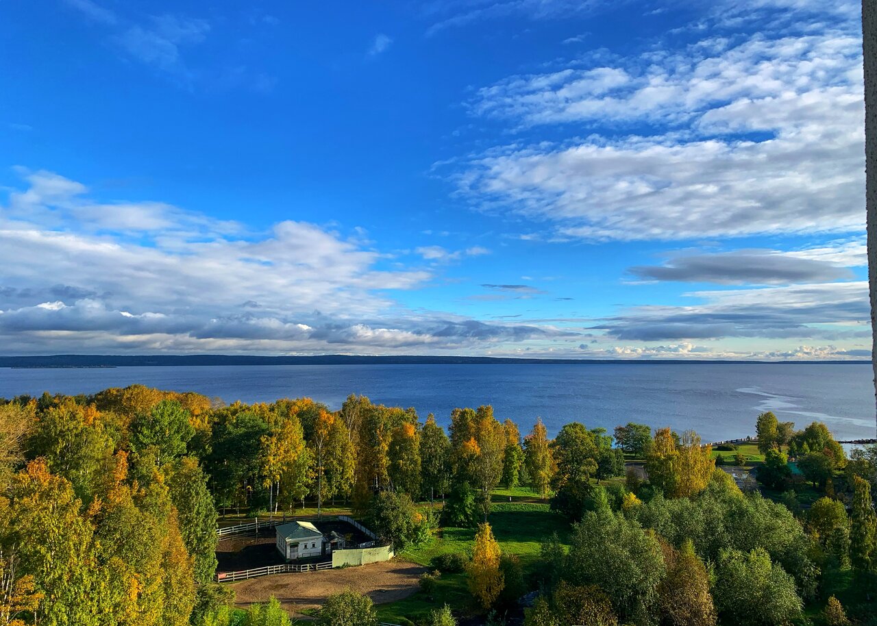 На берегу Онеги, с прекрасным видом, хорошие завтраки, бесплатное спа с 9 до 11 с бассейном и банями.