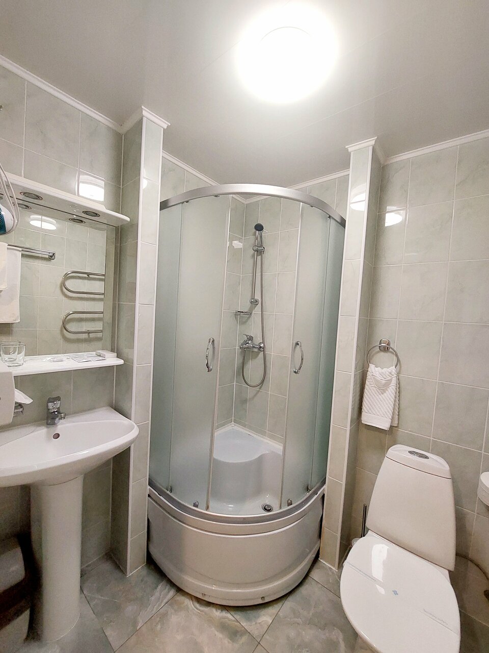 Хороший отель, своей звездности соответствует. ‘Шведский стол’ на завтрак очень достойный! Всё вкусно. Даже бокальчик шампанского можно позволить. Как минус отмечу лифты. Их всего два и вместимость 4 человека. В номерах чисто. Как, на мой взгляд, недостаток, ламинат на полу. По мне лучше бы ковровое покрытие. И какой ‘умник’ додумался установить такую душевую кабину, с ‘табуреткой’? Мыться в ней очень неудобно!