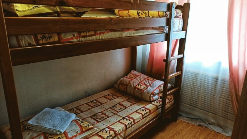Не особо следят за состоянием номеров (отсутствие плафона у бра, отваливающиеся галтели, давно не стиранная шторка в душе и одеяла). Плохо, что нет полотенцесушителя в ванной комнате. Постельное бельё и полотенца чистые. В номере есть холодильник, чайник и кулер с водой на этаже.