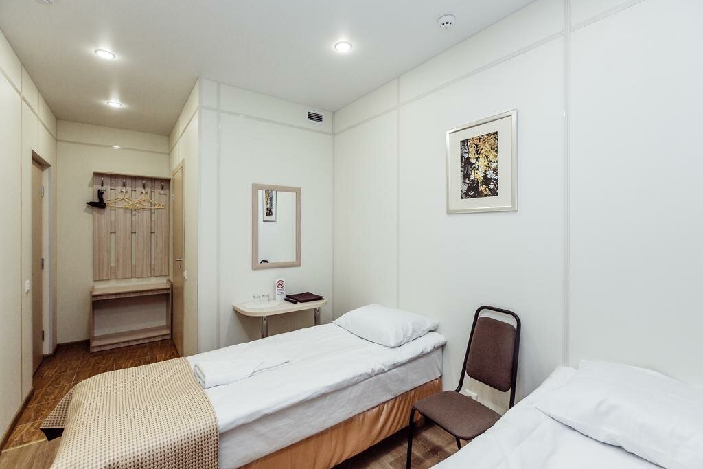 Минусы: - маленький номер. Очень тесно - подушки и матрас оставляют желать лучшего Плюсы: - расположен возле ж/д вокзала - в коридоре есть микроволновая печь и чайник