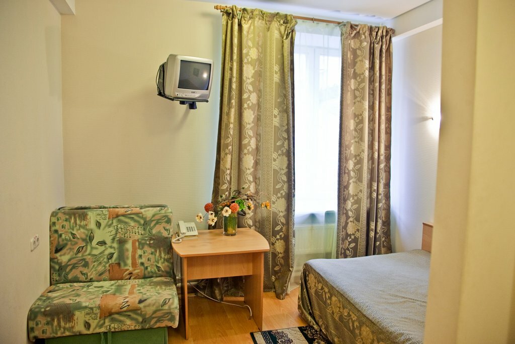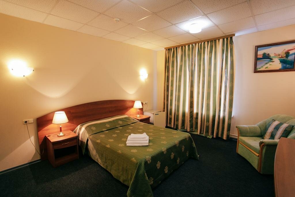 Гостиница для проведения спортивных сборов, может для этого и подходит. Расположена удобно, рядом кафе, рестораны, набережная. В качестве третьего места в номере оказалось разложенное кресло. Батарея (одна в номере) не работала (на улице -20) — предложили включить калорифер, который уже заботливо был установлен прямо на стене. Завтрак посредственный. В туалете нет освежителя