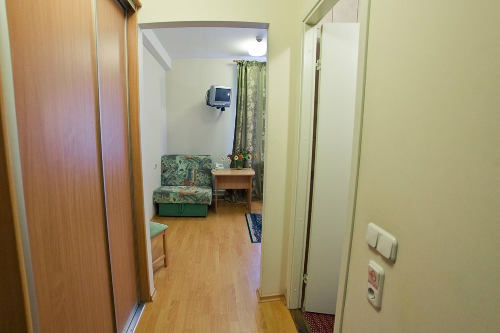 Если вы хотите вместо отдыха слушать, как над вашей головой бегают спортсмены, стучит мяч и делается ещё сотня черт знает каких громких действий — это ваш выбор. Ни поспать, ни отдохнуть спокойно, постоянный грохот. Большой минус — в номерах нет утюга и холодильника. Мебель давно просит ремонта, сильно потрепана и местами держится на честном слове. Больше сюда возвращаться желания нет