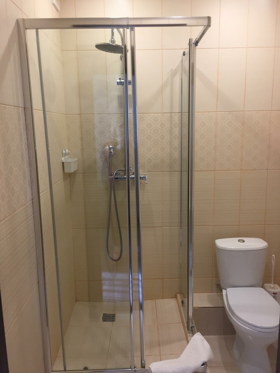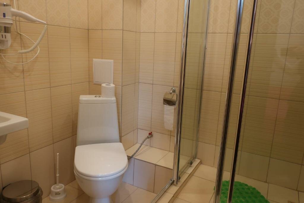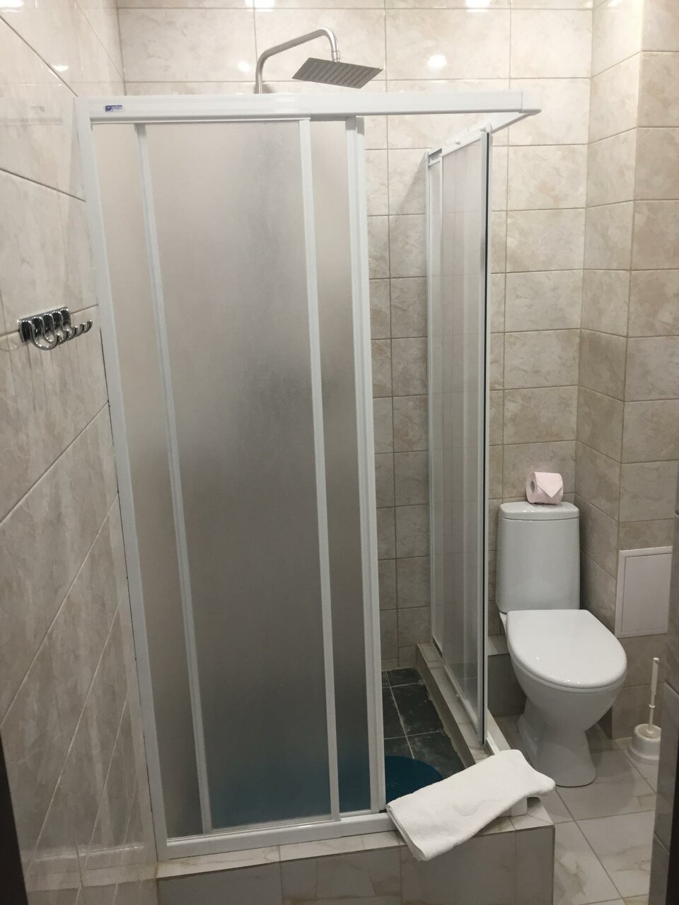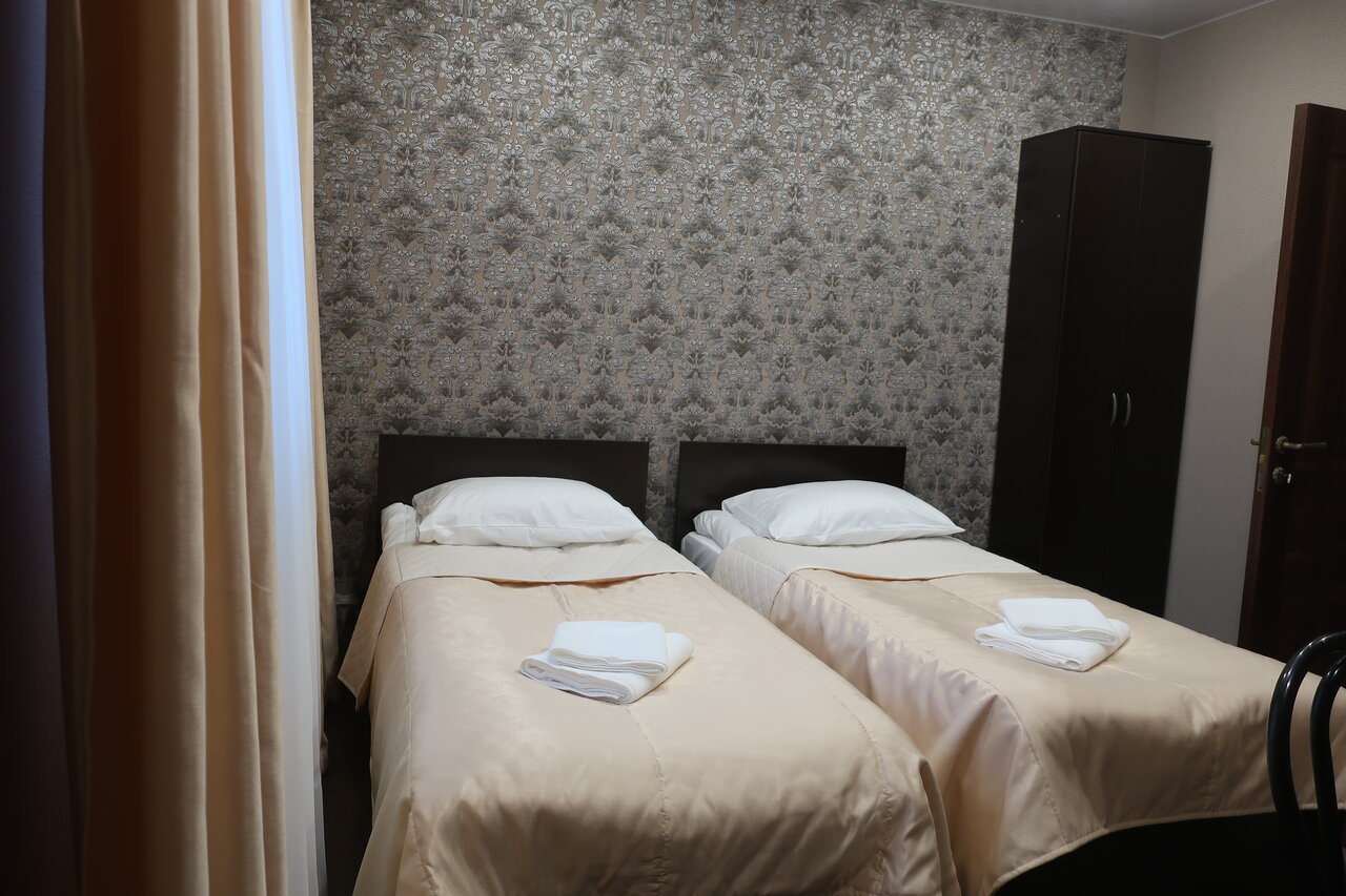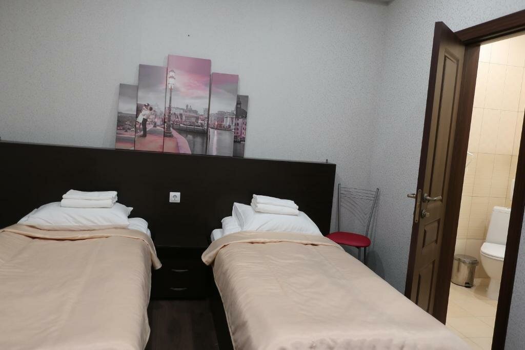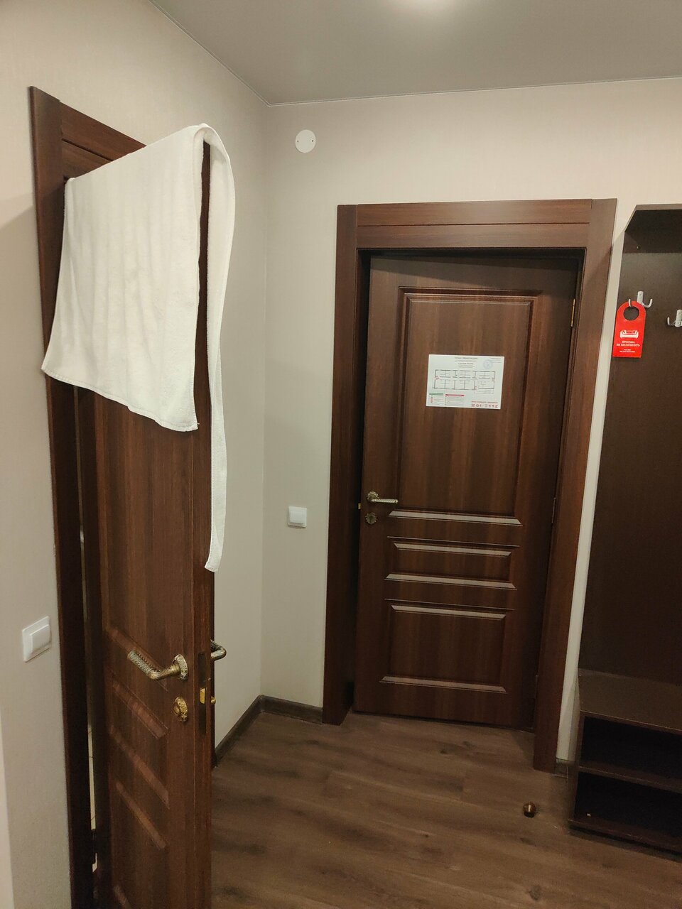 + Цена, вежливый персонал, свежий ремонт- здание новое, приятно находиться. В номере чисто, тепло, огромный TV, Wi-Fi, холодильник, чайник, кружки и ложки. Фен. Слышимость — тихо, ничего не беспокоило. - в ванной комнате нет вешалок или полочек для одежды. Раздеваешься — и не знаешь куда одежду положить. После ванных процедур большие полотенца хотелось бы подсушить — то есть хотя бы повесить на крючки — но их нет. Пришлось сушить полотенца не дверях шкафа. - покрывала с кроватей я сразу убрала в шкаф с глаз долой — на них были обнаружены волосы предыдущих гостей и катышки. Больше минусов не обнаружено 🙂 Пожили хорошо и недорого.