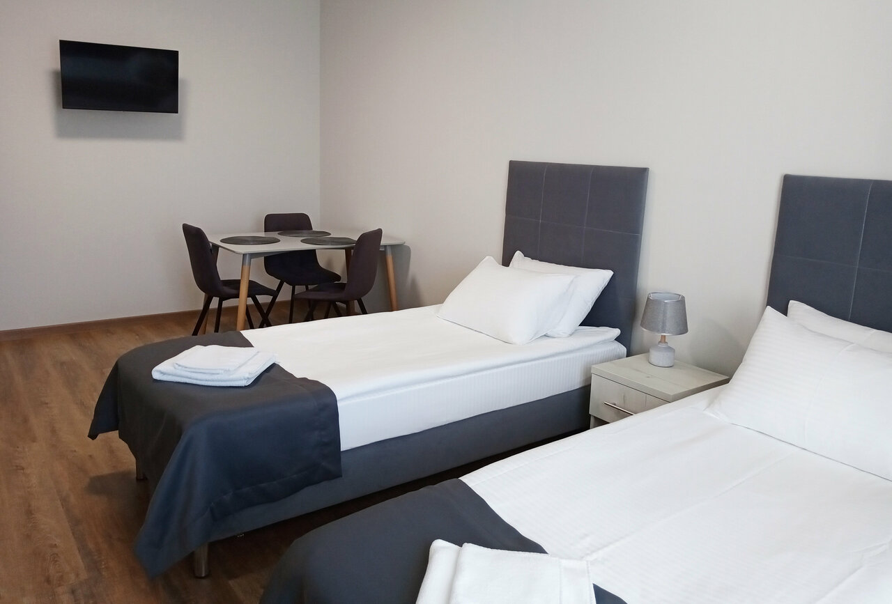 Новая гостиница с уютными апартаментами,где есть шикарная кровать с большими подушками,кухонный уголок с достаточным набором посуды, просторный санузел с очень удобным душем. Стильно. Чисто. Доброжелательный персонал, радушная хозяйка. Своя парковка. Удобное расположение: хороший выезд на федеральные трассы,рядом магазины Сигма,Пятёрочка,кафе быстрого питания. До набережной минут 15 на машине