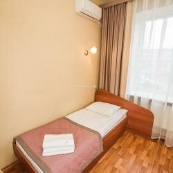 Небольшой, но очень уютный номер для одного Гостя. Номер снабжен душевой кабиной, ЖК-телевизором и wi-fi. Спальное место 200*900 см. Кровать снабжена отличным ортопедическим матрасом.