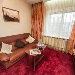 Просторный номер с гостиной и большой двухспальной кроватью и диваном, который может быть использован как дополнительное место размещения. Этот номер пользуется популярностью у путешествующих на автомобиле семей с детьми.