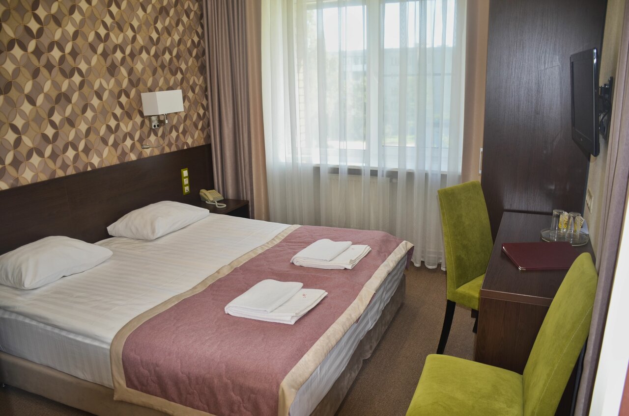 В номере телевизор, кондиционер, полотенца, удобная кровать, номер чистый. Большая душевая кабина. Пакетики с гелем для душа, шампунем и мылом предоставляются. С закрытым окном дороги не слышно . Нам все понравилось. Ночевали 2 ночи с ребенком 1,5 года. Персонал дружелюбный. Завтрак вкусный и недорогой . Парковка есть