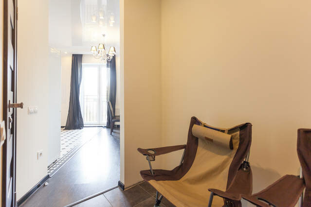 Лучше места не найти. Закрытая территория, паркинг, ландшафтный дизайн, барбекю, мангал беседки, отдельный выход к морю через сосновый парк и это только территория. В апартаментах свежий современный ремонт. Чисто, красиво, современно. Все продумано, удобно. Есть все для проживания. 4 французских окна выходящих на сторону соснового парка и моря. Есть балкон. Есть кофе машина, интернет, телевидение, колонка для подключения iPhone. Очень круто. Обязательно только сюда!