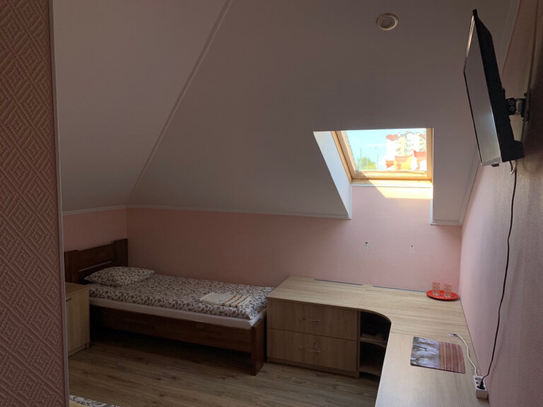 Всё чисто, убрано. Номера на мансардном этаже под крышей. Мансардные окна, не обородуваны светофильтрами — фонари ночью светят прямо в глаза, днём солнце. Нет кондиционера или хотя бы вентилятора. Ночью душнина, спать не комфортно. Приходится открывать окна, которые выходят на новую трассу, до Светлогорска, а там тачки всю ночь по ушам ездят. Для владельца: могли бы уже и кондишки установить с светофильтрами.