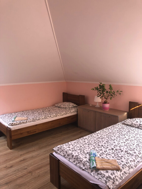 Хорошие хозяева, быстро заселили, для проживания всё есть, в общей комнате стол, стулья, холодильник, чайник, микроволновка, посуда, утюг. В номере ванная комната с туалетом, кровать, тумбочка, телевизор, шкаф, фен, даже есть гели и шампуни в пакетиках и зубная щётка с пастой на пару раз.. Гостевые комнаты находятся на мансардном этаже, на первом этаже магазин Бристоль. От моря близко, 10 минут, пляж суперский, спокойный, не глубоко, хорошие кафе (особенно кафе НеТоми). Я приходила только переночевать, поэтому меня всё устроила, отличное соотношение цены и качества.