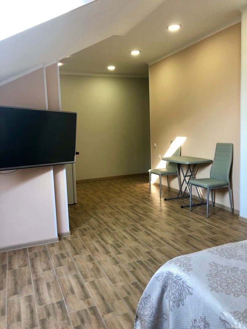 Номер был семейный во втором корпусе со своим входом и балконом. Разделён на зоны: спальня и кухня. Порадовал тёплый пол в части номера и отопление в ванной комнате. В ванной есть настенная сушилка. Приветливый и отывчивый персонал, который всегда помогал в наших запрсах. В отеле есть возможность бесплатно постирать со своим порошком (для моей супруги это очень важно). При отеле столовая, где можно доступно, быстро, вкусно поесть.