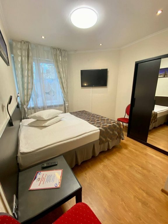Хороший отель. Есть своё кафе-столовая. В номере (бюджетный вариант) есть телевизор, холодильник, микроволновая печь, чайник, посуда, сейф. Единственное, что не понравилось — нет прямой дороги (пешеходной) от автовокзала.