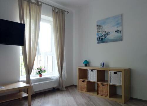 Хороший вид из окна, свежий воздух. Квартира просторная, удобная мебель . Не хватала шкафа в спальне. Море рядом, хорошие детские площадки.