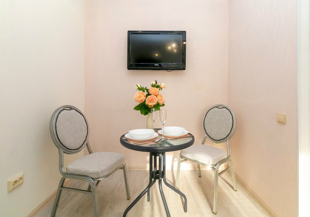 - Красивый интерьер.; Комфортные условия.; Наличие всего необходимого.; Приемлемая цена.; Просторные помещения.
