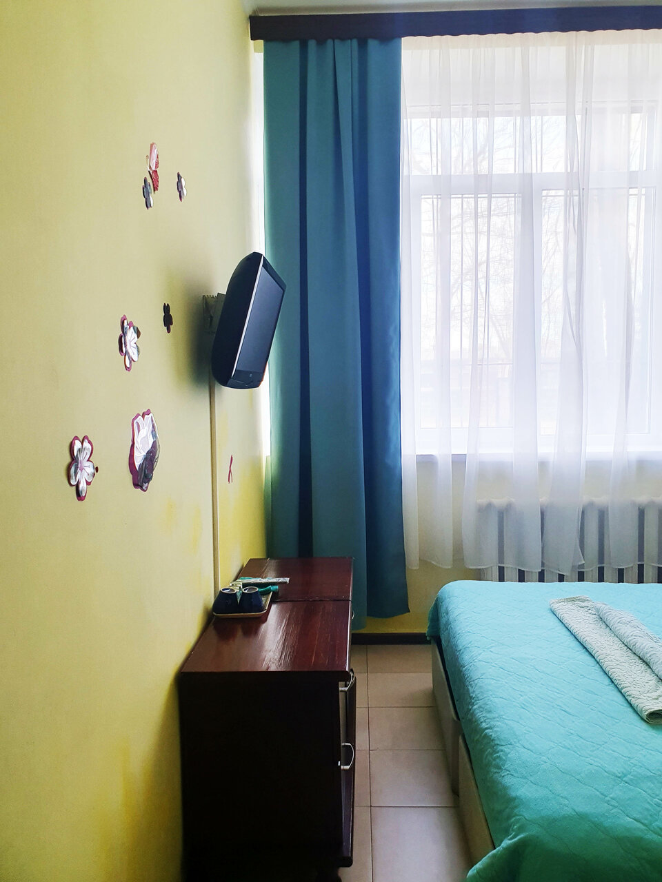 Шумоизоляции вообще нет, как будто стены из картона сделаны, соседи у себя в номере разговаривают, а кажется, что будто у тебя в номере). Попросил утюг вещи погладить, мне ответили, что его тяжело и долго доставать — в общем так и не дали, пришлось в мятой одежде идти. Ремонт неплохой, только не работает телевизор и очень очень маленький номер, такое чувство квадратов 8 не больше.