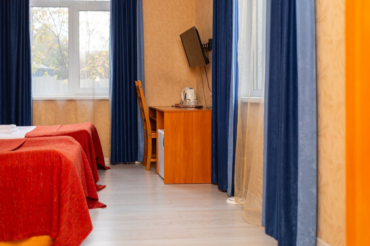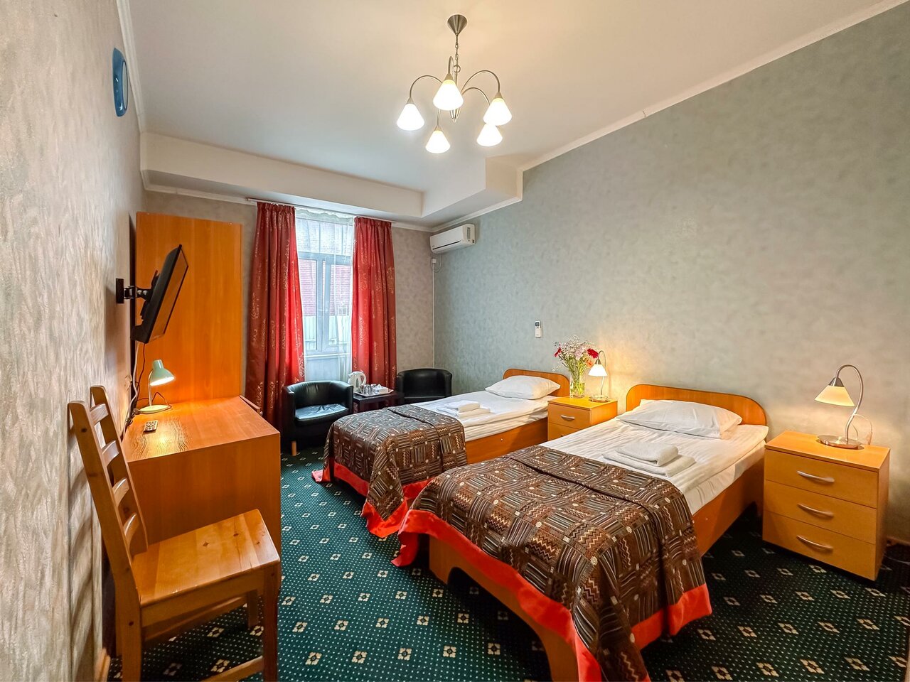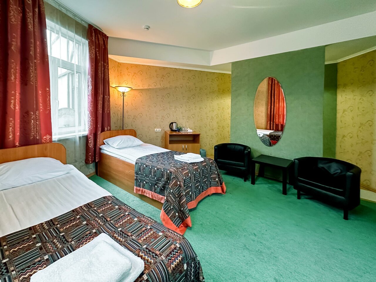 Отоичная гостиница! Вежливые администраторы, всегда пойдут на встречу и помогут) Вкусный завтрак на выбор и ко времени, удобному гостю) Уютные номера со всем необходимым, полотенца, шампуни, мыло и гель дня душа, также чайник, холодильник, чистое постельное белье. В номере чисто. Вода на этаже. Место хорошее, рекомендую к заселению)