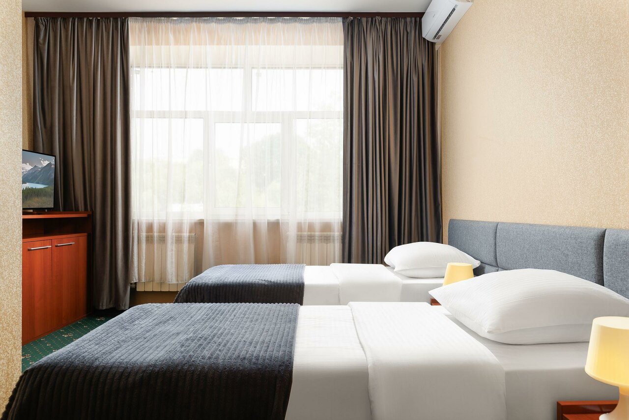 1-2 человека - 4800р/суткиДвухместный Стандарт + - одна комната с комфортными условиями (27 м²), две односпальные кровати, завтрак каждый день, номер для некурящих