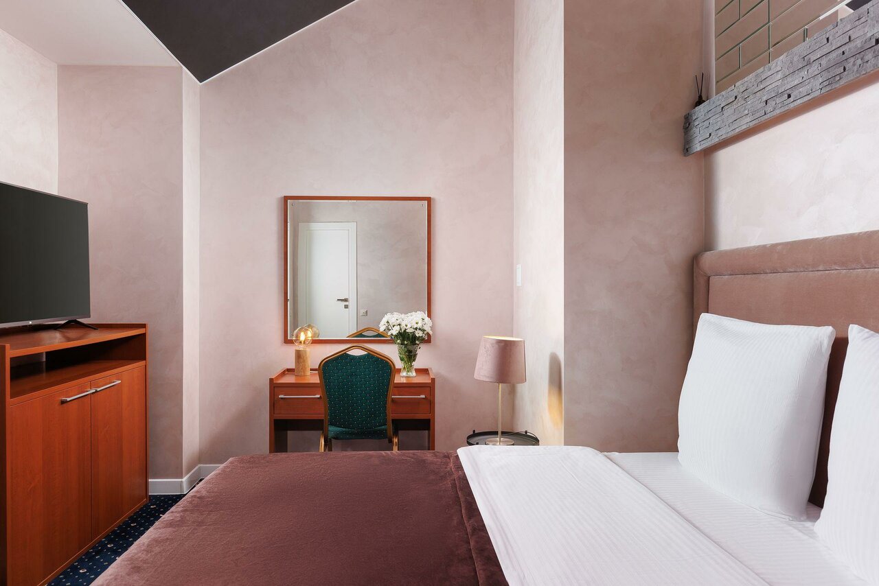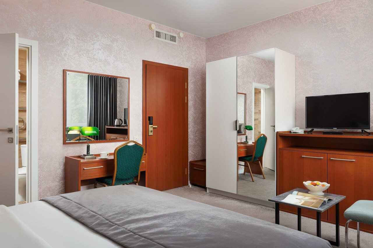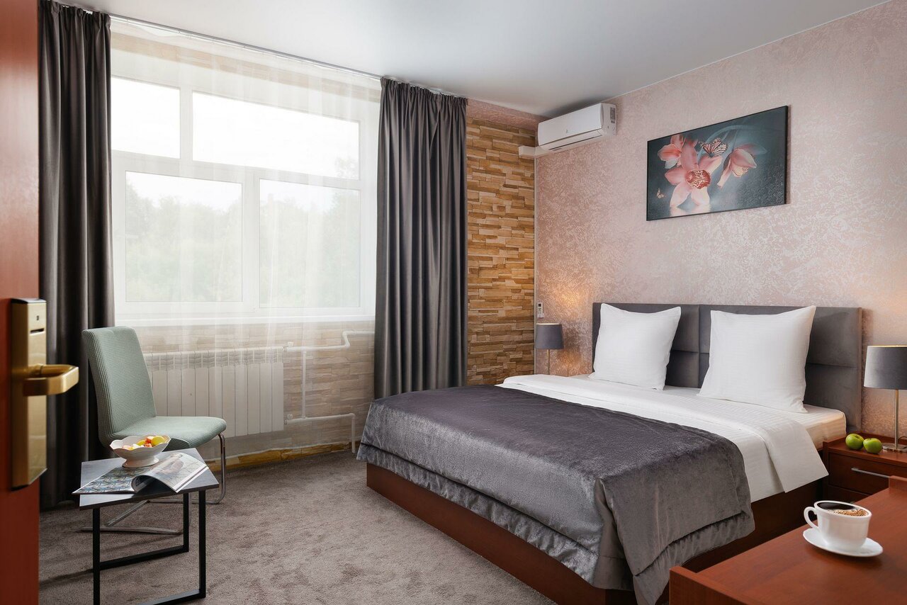 1-2 человек - 4500р/суткиДвухместный Стандарт + - одна комната с комфортными условиями (20 м²), двуспальная кровать, завтрак каждый день, номер для некурящих