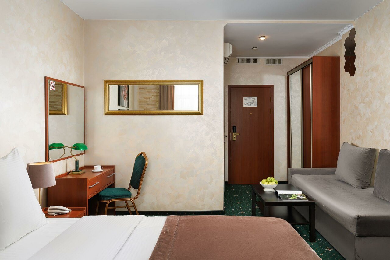 1-2 человека - 5000р/сутки, 3 человека - 6000р/суткиПолулюкс Комфорт - одна комната с комфортными условиями (25 м²), двуспальная кровать, завтрак каждый день, номер для некурящих