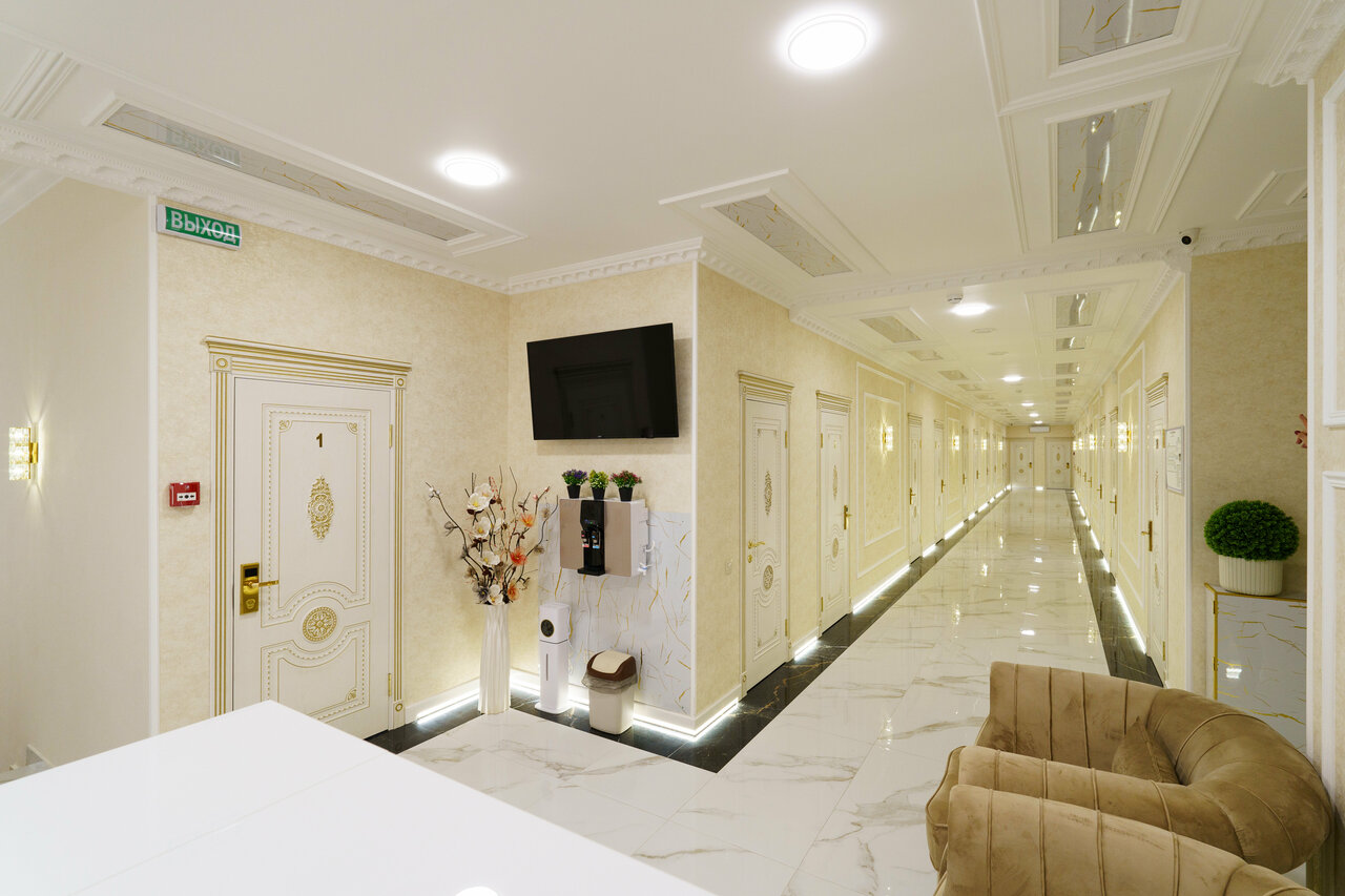 - Хорошая шумоизоляция.; Наличие холодильника, чайника, телевизора, фена.; Хорошие гигиенические наборы (халаты, тапочки, шампуни).; Вежливый и заботливый персонал.; Бесплатная парковка.